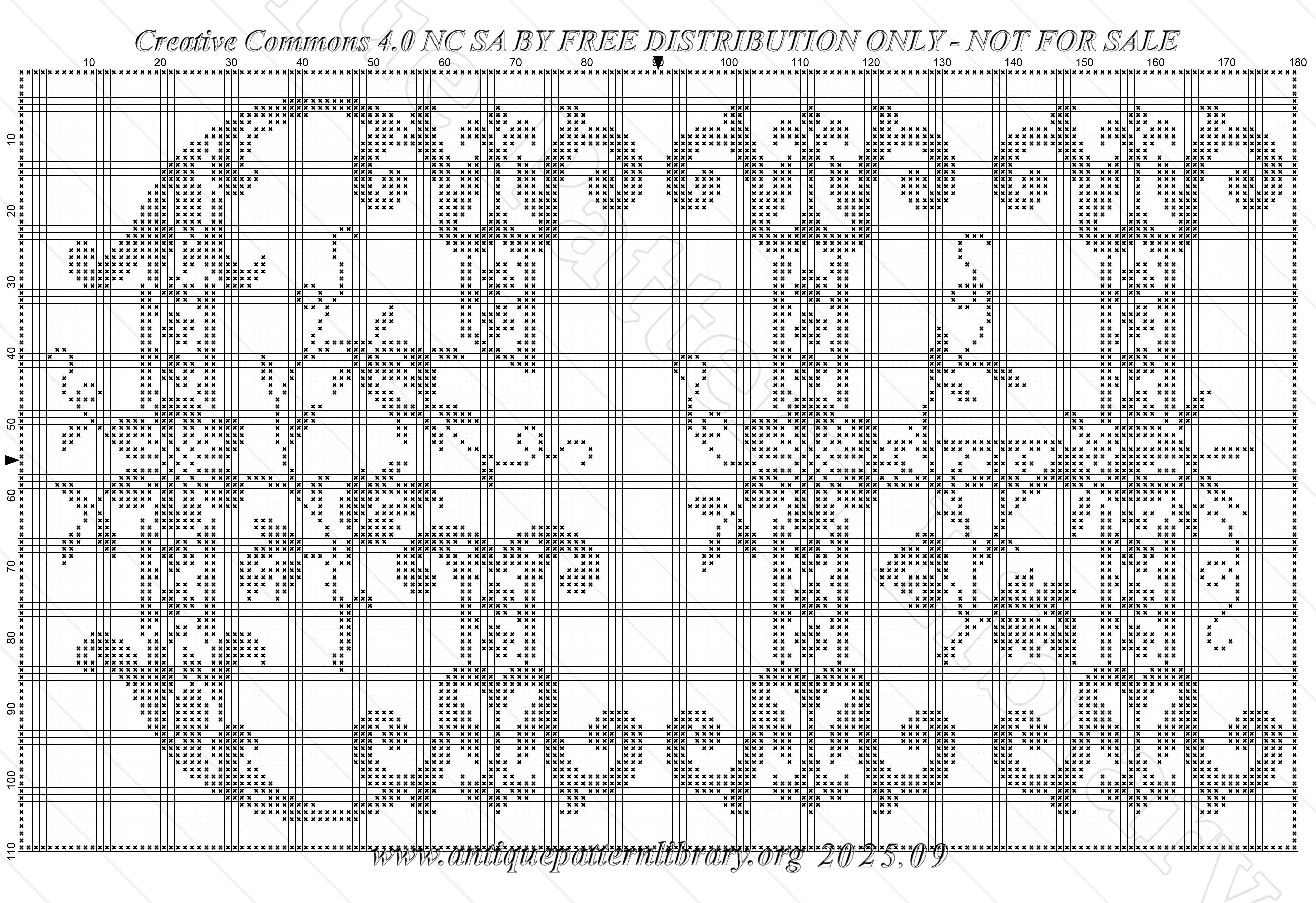 Four cross-stitch alphabets, two small, one medium, one large with floral decoration.