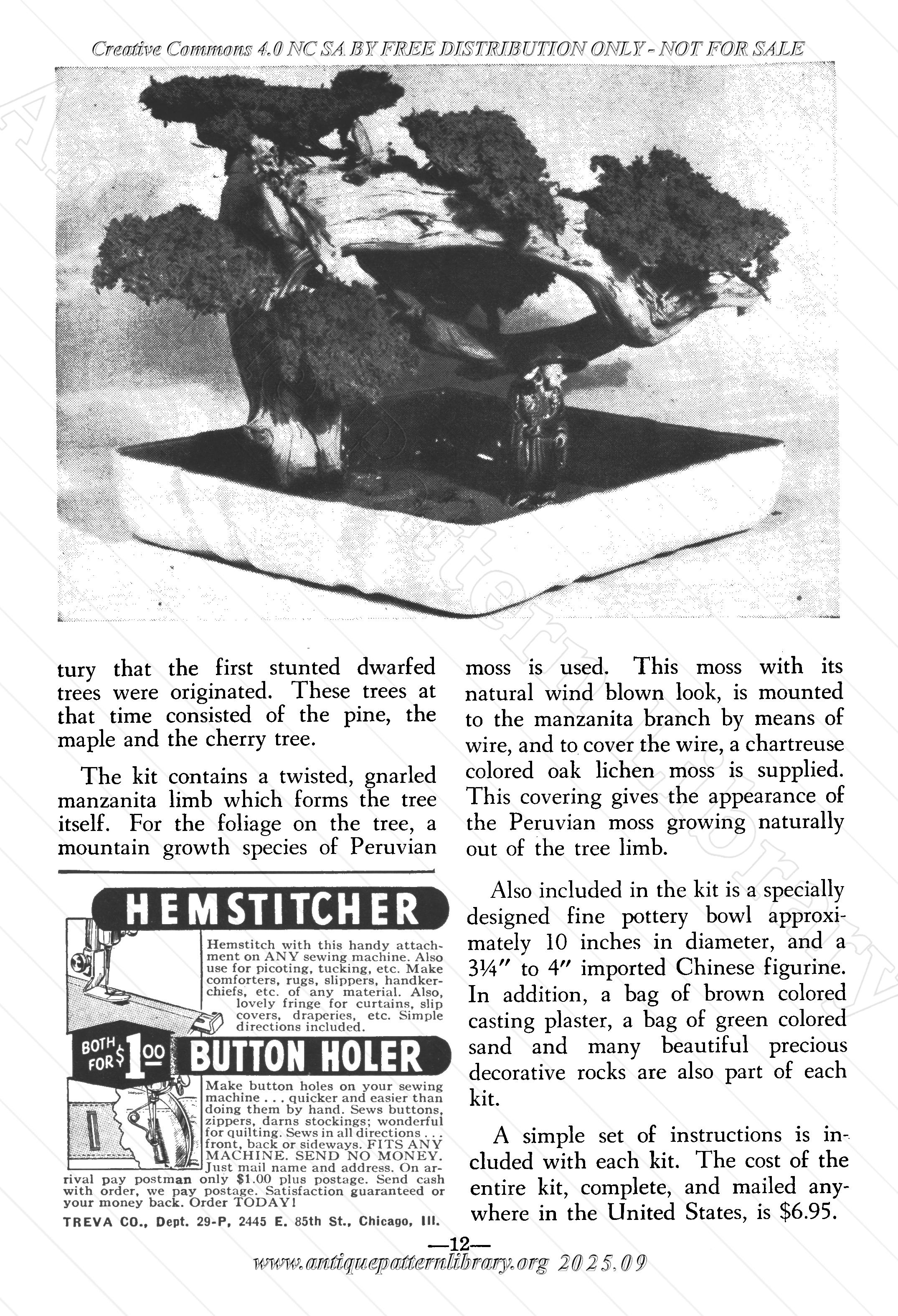 Crocheted Tablecloth in Grape Leaf Pattern, Knitted Bag, Lacy Crocheted Apron, Cake Builder, Aunt Ellen's Club Notes, Refinishing Furniture, Miss Jennie's Pumpkin Pie, Cooking Hints, Cane Seat Weaving, Mittens in Fair Isle Knitting, Tatted Edging and Insertion, Lacy Doily, Child's Sweater in Crocheting, Spoke Pan Holder, Book reviews.