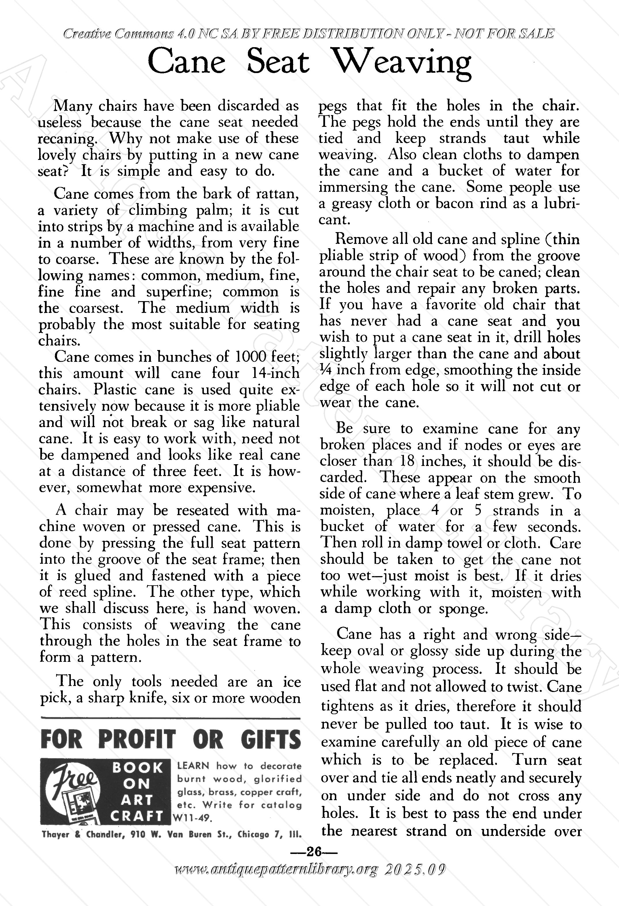 Crocheted Tablecloth in Grape Leaf Pattern, Knitted Bag, Lacy Crocheted Apron, Cake Builder, Aunt Ellen's Club Notes, Refinishing Furniture, Miss Jennie's Pumpkin Pie, Cooking Hints, Cane Seat Weaving, Mittens in Fair Isle Knitting, Tatted Edging and Insertion, Lacy Doily, Child's Sweater in Crocheting, Spoke Pan Holder, Book reviews.