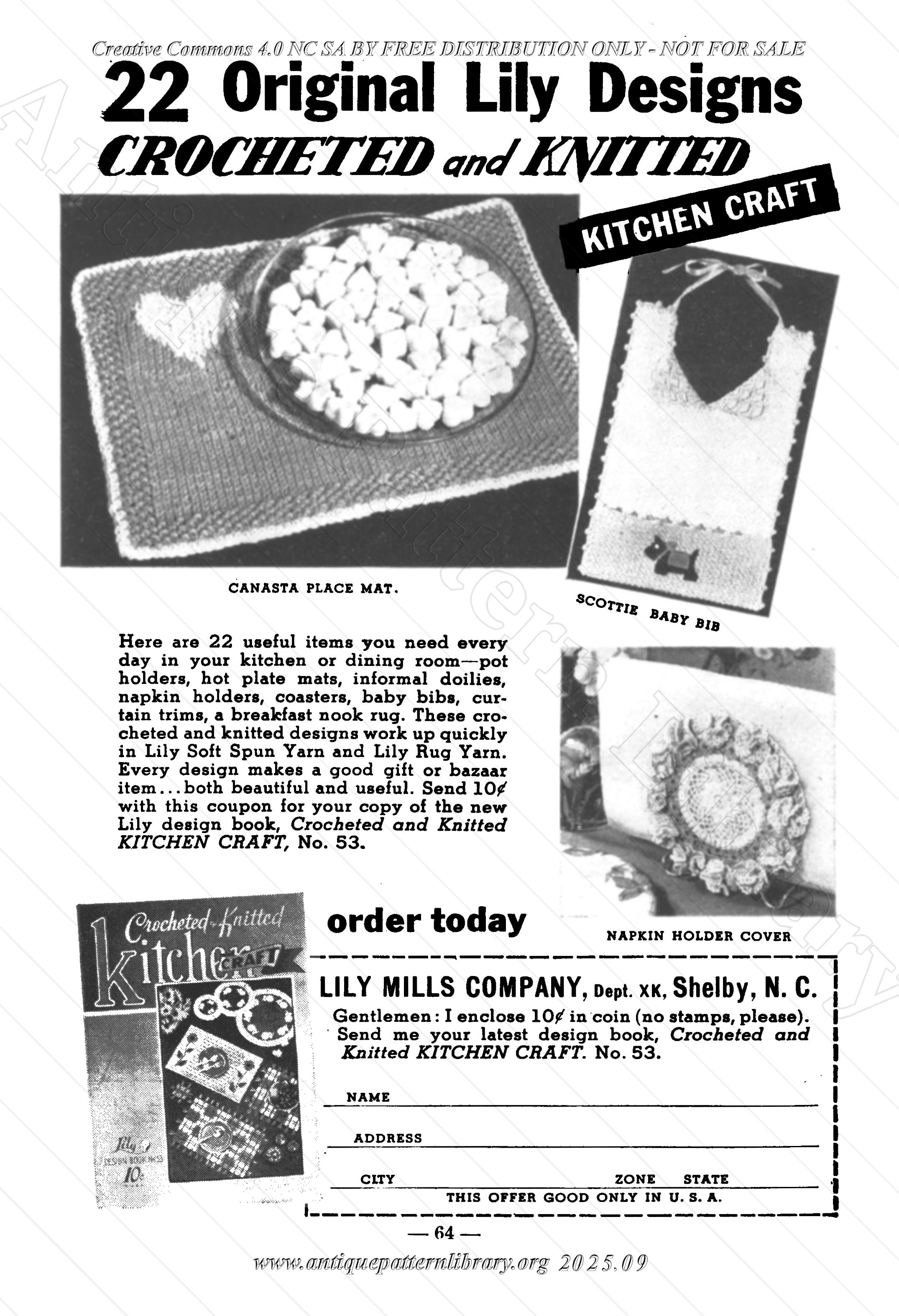 Hairpin lace: Vanity set with large and small doily. Huck weaving on towel. Crochet: Apron and matching pan holder. Figurine painting, Women who make cents (articles to sell), Aunt Ellen's Club Notes with a banana nut bread receipe, Pumpkin Cake, Creamy Caramel Icing, Green Tomato Relish, Orange Pudding, Popcorn Balls. Crochet: Pinwheel Pan Holder. Home and Garden forum tips. Waffle Pique Embroidery, Crocheted Teddy Bear, crocheted Rose Pin Cushion with Ruffle, Basket making, Halloween Clown doll, Lilac Square Tatting. Quilting: Colonial Rose Quilt, Crocheted Scarf.