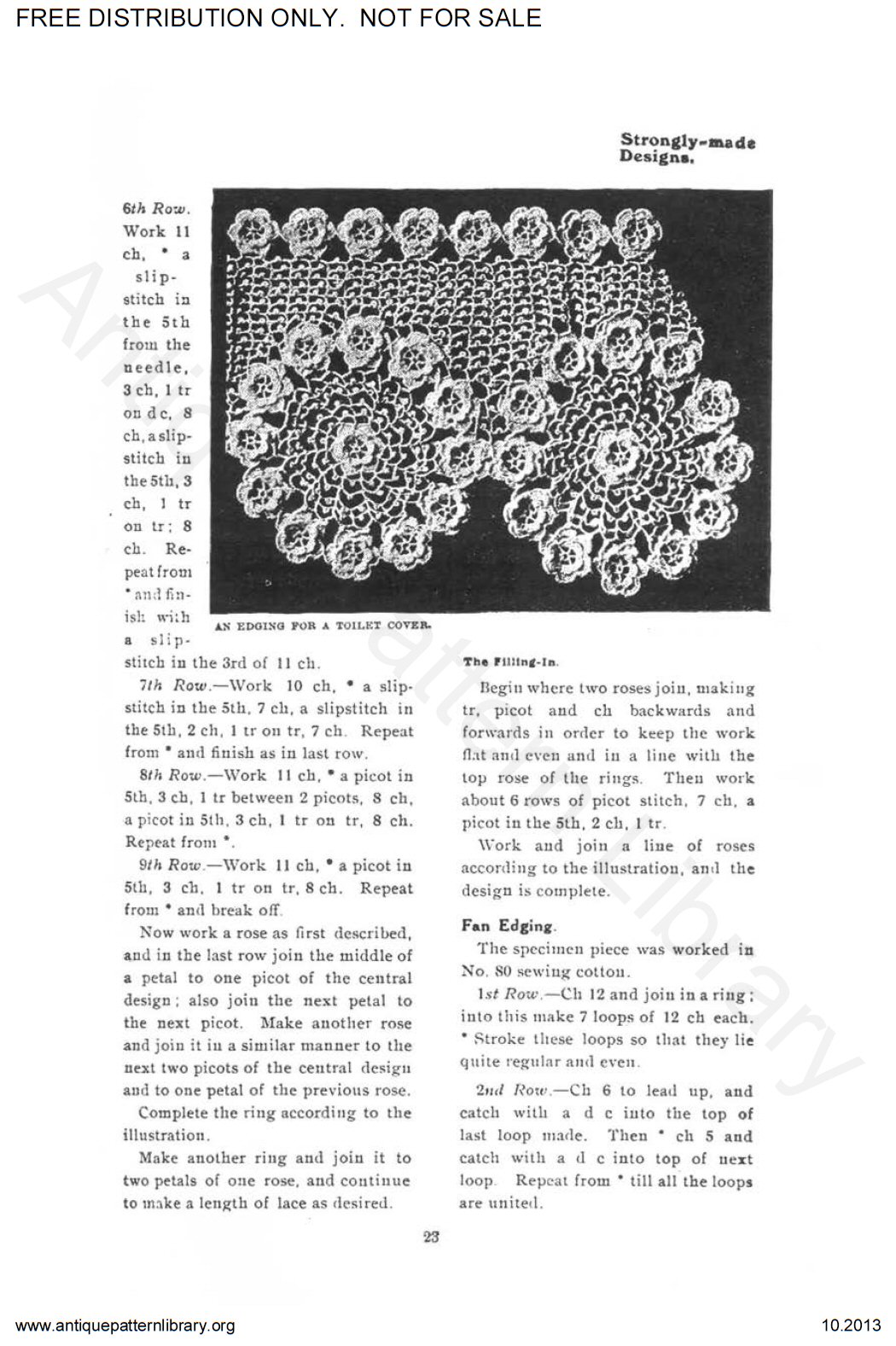 Containing Entirely New Designs for Lingerie, Edgings & Insertions, Borders for Tray Cloths & D'Oileys, Deep Laces for Table Cloths & Valences, Motifs for Inlet Work & Irish Lace, Eighth Impression.