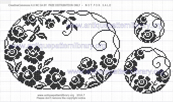 Crocheted doilies, including some charted filet crochet.
