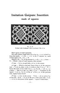 Crocheted laces to imitate Torchon, Venetian, Guipure, Cluny, Screen laces. 71 numbered pages not including covers. Popular book, original in French but because of market demand translated in English.