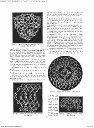 Tatting instructions for cotton, silk and metallic thread, with patterns for doilies, edgings, insertions, bags, yokes, motifs (lovely roses and daisies), collars, baskets, beadwork, tatted appliqué on net, an alphabet, candleshades, baby bonnets.
