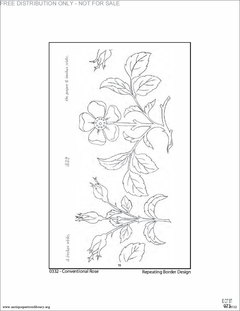 A large collection of freehand embroidery designs, circa 1884-1900. Original book was of early hot iron transfers - the reproduction has changed the size, bu they can be restored to original dimensions with an enlarging<br>educing photocopier or computer drawing program. Includes floral borders and insertionss, wreaths, scallops and edgings for clothing, handkerchiefs, and linens; designs for applied braid or soutache (some can be used for Battenberg lace). Some designs have intended use or color notation; floral sprays and botanical/fruit sprigs; drawings of Japanese porcelain dishes and fans; designs for mens' smoking caps; small insects and butterflies; birds; floral corners; brackets (designs for shelf linens or valences); apron/pinafore decroration; slipper tops; lingerie bags; pillow shams; monograms and initials; drawings of dresses indicating recommended placement of embroidery; devotional/church designs; adorable children at play; Kate Greenway village vignettes. LImited number of Russian cross-stitch designs; dogs and cats; sporting motifs.