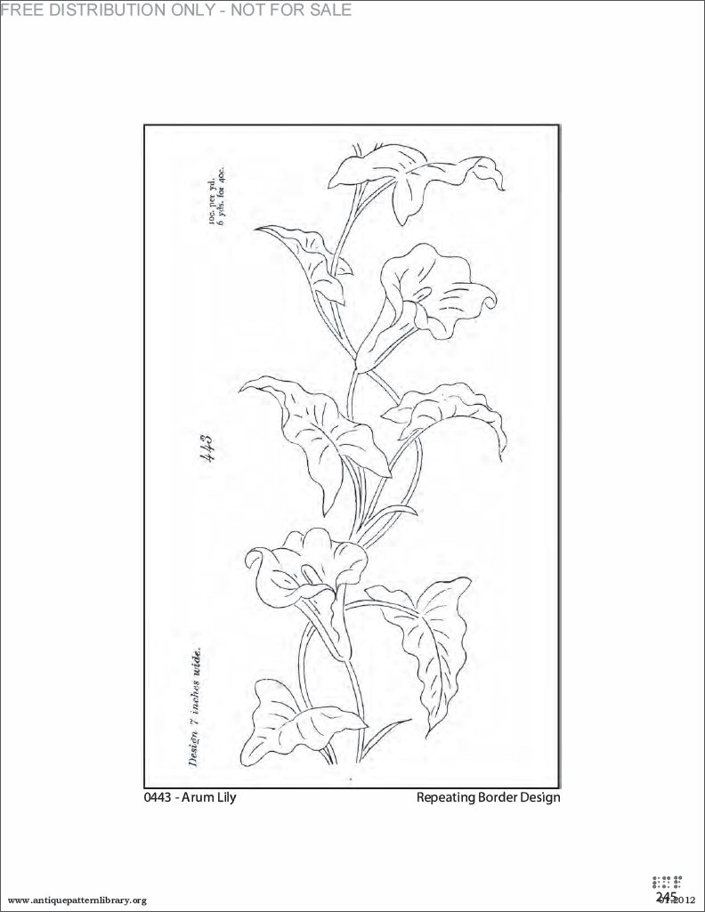 A large collection of freehand embroidery designs, circa 1884-1900. Original book was of early hot iron transfers - the reproduction has changed the size, bu they can be restored to original dimensions with an enlarging<br>educing photocopier or computer drawing program. Includes floral borders and insertionss, wreaths, scallops and edgings for clothing, handkerchiefs, and linens; designs for applied braid or soutache (some can be used for Battenberg lace). Some designs have intended use or color notation; floral sprays and botanical/fruit sprigs; drawings of Japanese porcelain dishes and fans; designs for mens' smoking caps; small insects and butterflies; birds; floral corners; brackets (designs for shelf linens or valences); apron/pinafore decroration; slipper tops; lingerie bags; pillow shams; monograms and initials; drawings of dresses indicating recommended placement of embroidery; devotional/church designs; adorable children at play; Kate Greenway village vignettes. LImited number of Russian cross-stitch designs; dogs and cats; sporting motifs.