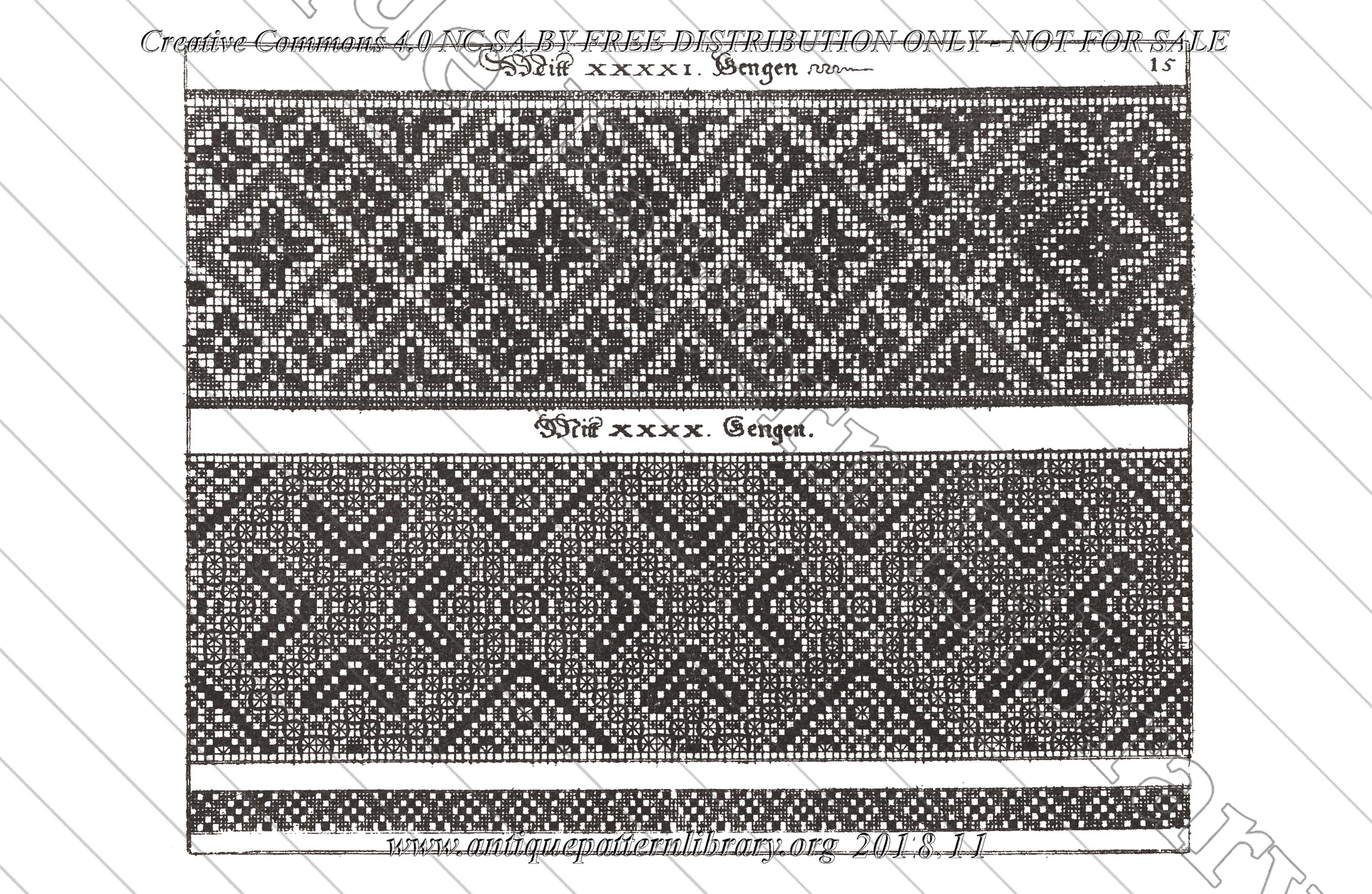 Hans Sibmachers Embroidery- and Lace-Patternbook, from the edition from the year 1597 as facsimile copy published by the Imperial and Royal Austrian Museum. With a preface, title page and 35 pattern pages. New edition.