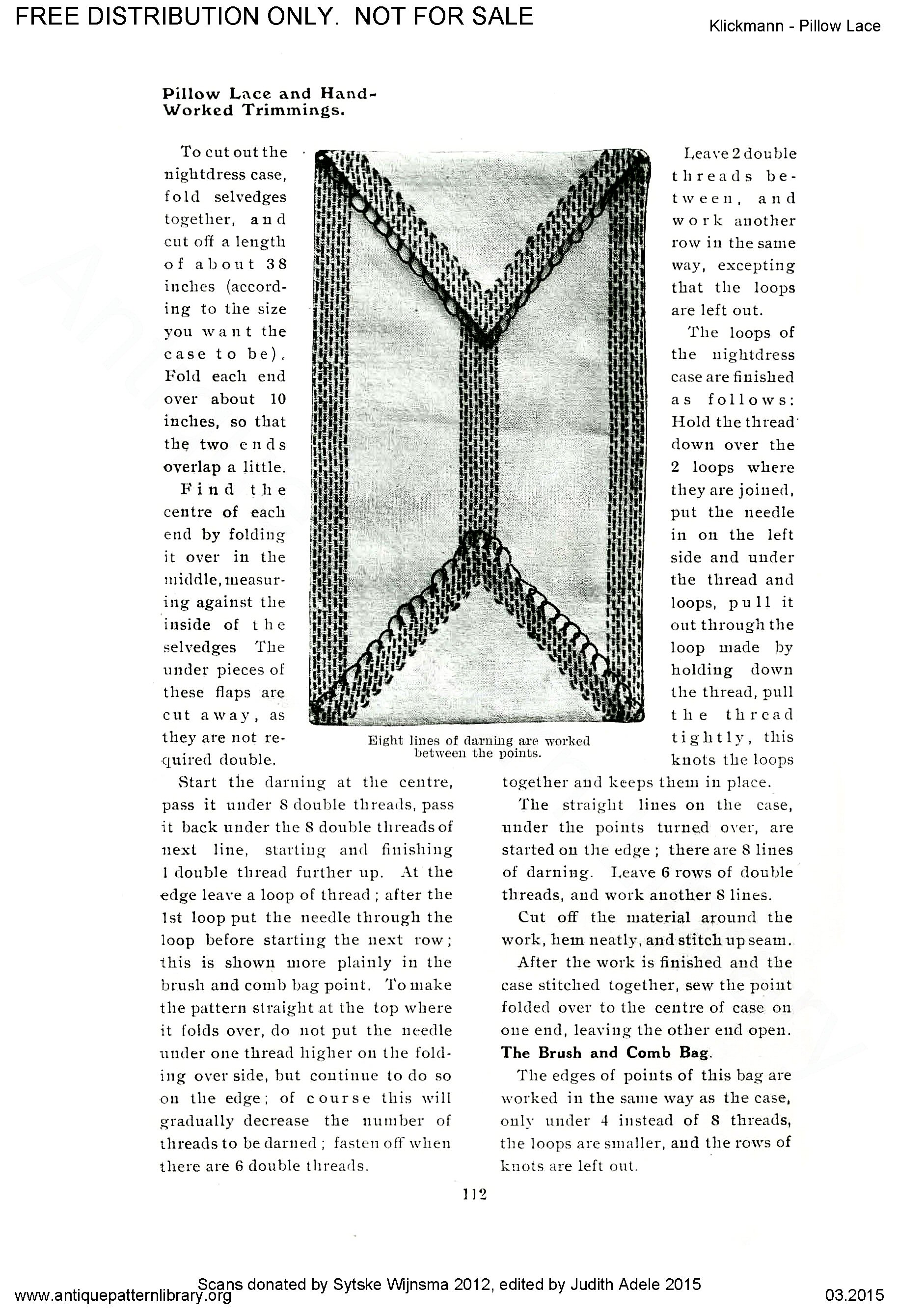 containing directions for making Brussels Duchesse llace, Cluny lace, Torchon lace, Maltese lace, and a variety of designs for decorative embroidery stitches.