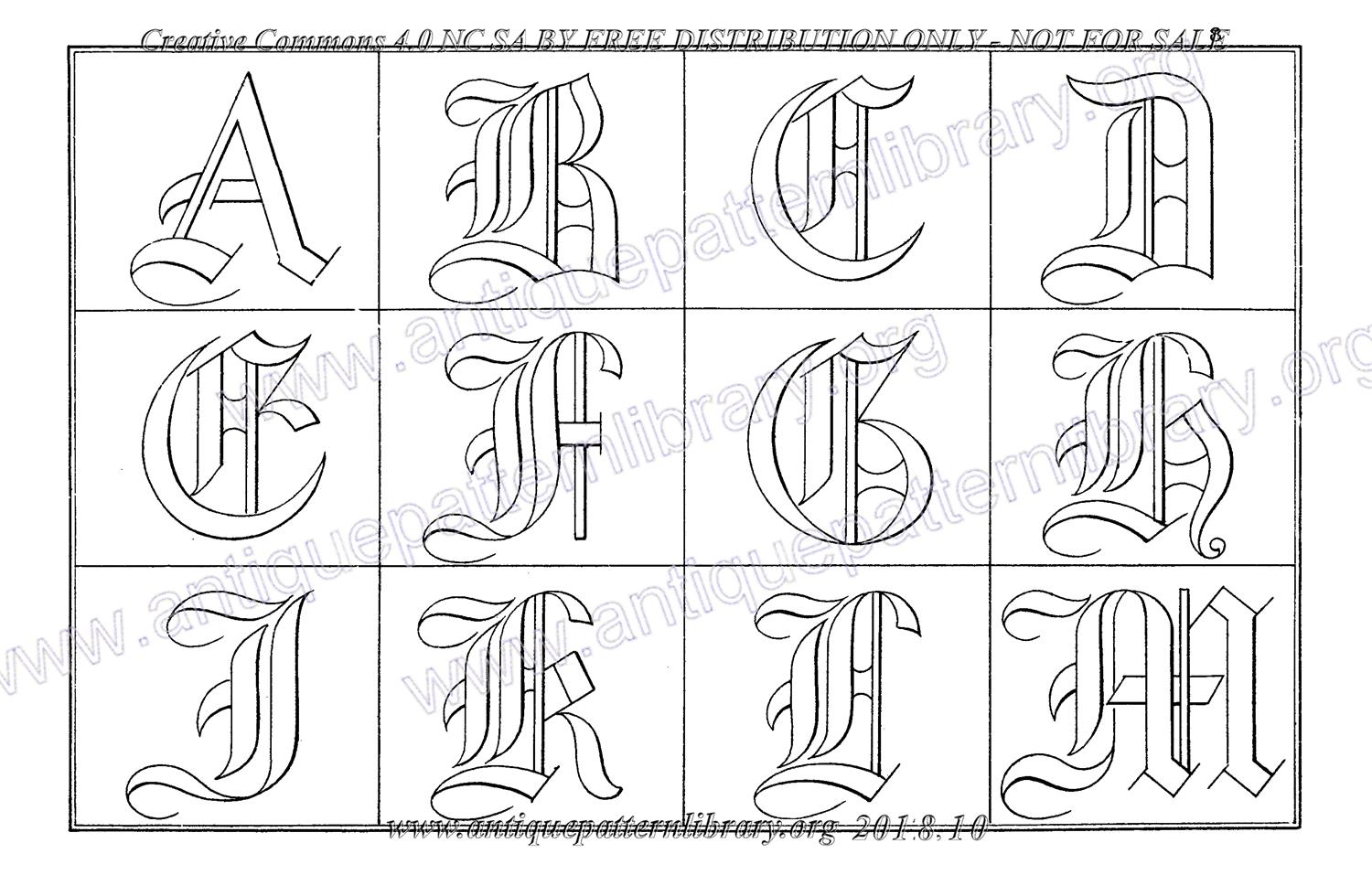 Eleven line drawn alphabets on 16 pages, some gothic, some lovely florals. Intended for whitework and surface embroidery.