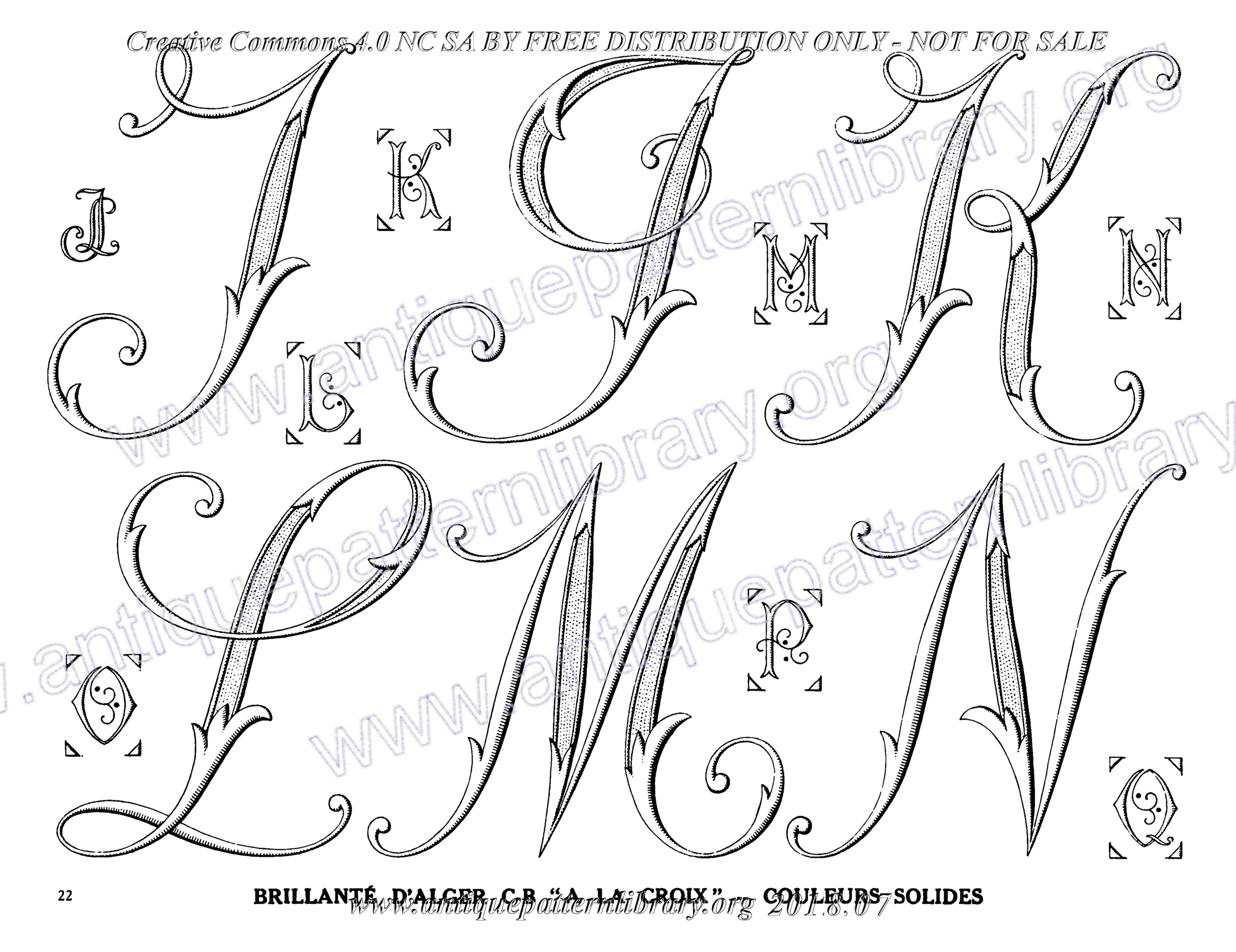 32 pages of initials, in the style of the 20s, for whitework embroidery on underwear and table linens.