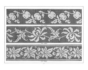 Softcover oblong album, 40 pages of filet patterns of which 20 and 21 are joined as one. The last four pages are small low-res images of larger patterns which were offered for sale. Patterns suitable for filet, filet crochet, cross-stitch and (smaller ones) for beadwork.