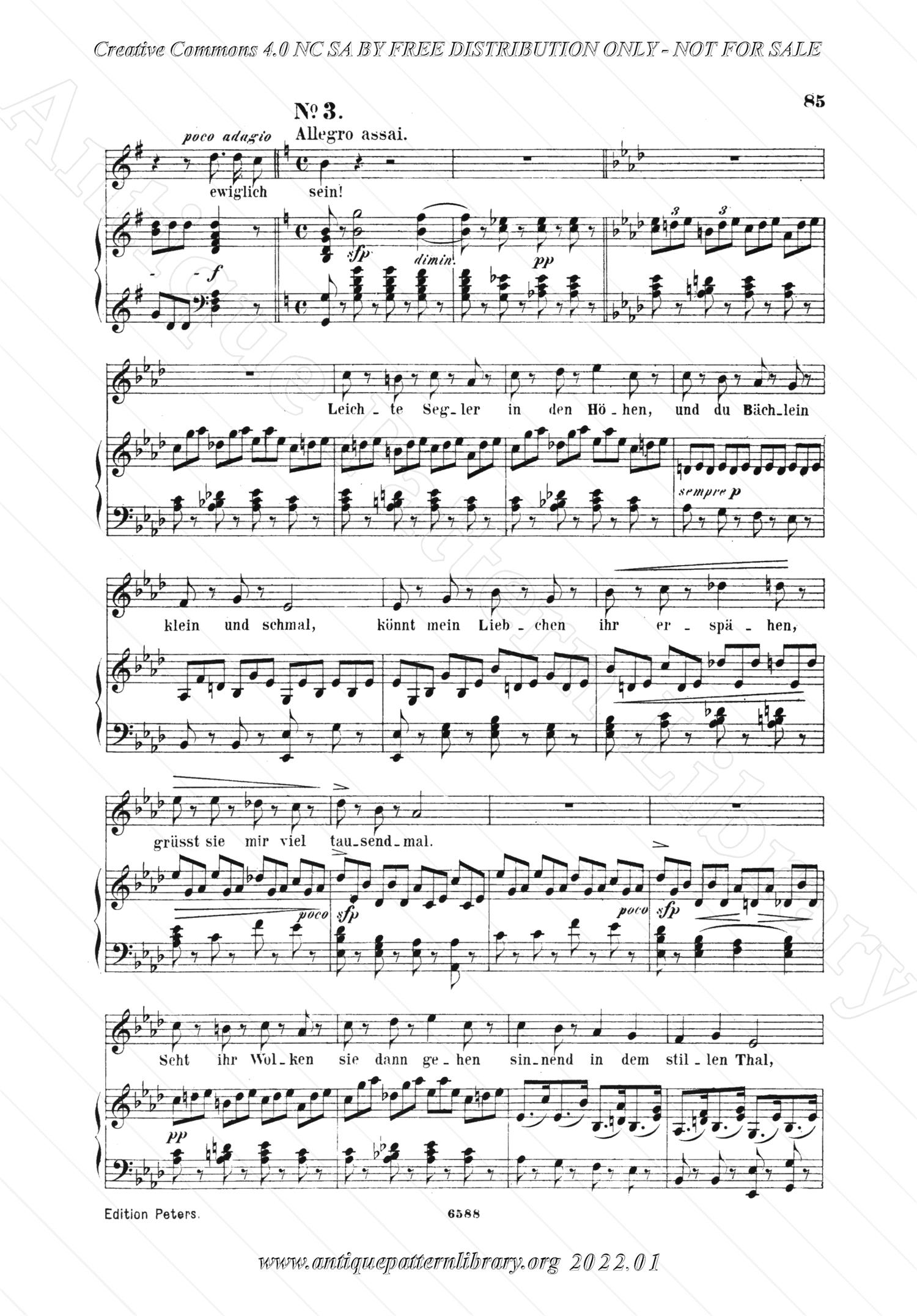 Hardcover bound book, 188 pages of music, 67 songs for voice and piano. Revised by Alfred Dörffel. Published by C.F. Peters in Leipzig, a famous and still-existing music publishing company, as part of their even more well-known Edition Peters series. No date mentioned, but most likely before 1920. The style of the cover and title page still occurs in 1915.