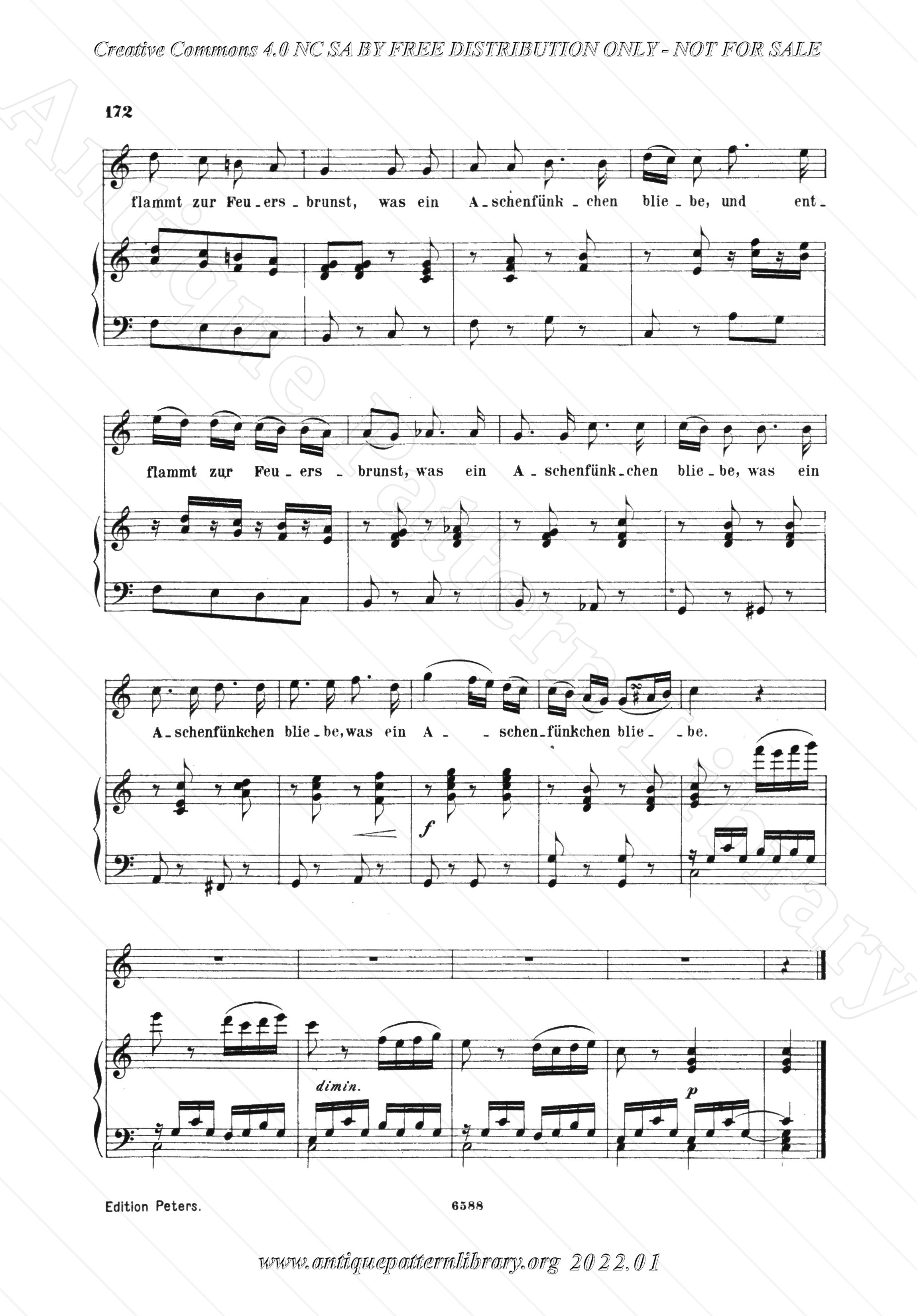 Hardcover bound book, 188 pages of music, 67 songs for voice and piano. Revised by Alfred Dörffel. Published by C.F. Peters in Leipzig, a famous and still-existing music publishing company, as part of their even more well-known Edition Peters series. No date mentioned, but most likely before 1920. The style of the cover and title page still occurs in 1915.