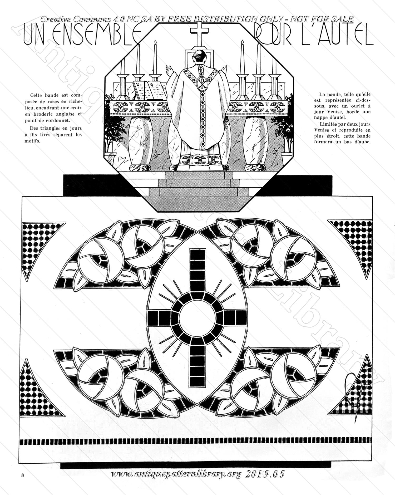 Large size softcover collection of fabric patterns, lace, embroidery and crochet patterns for liturgical vestments and alter cloths.
