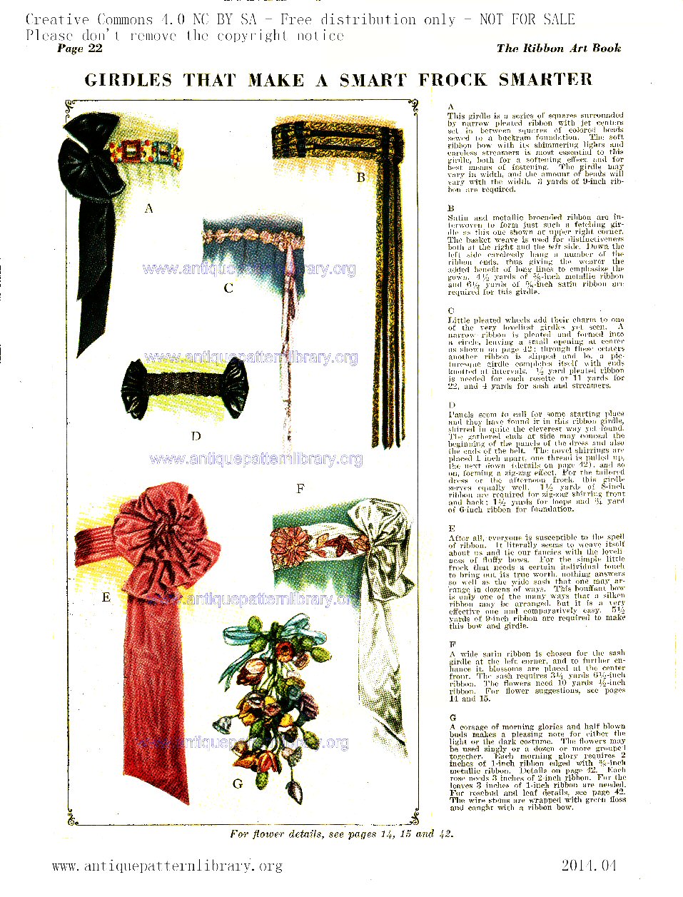 1920s chic through the use of decorative ribbon. Folding, flowers, ruching, applied trims, bows, cockades and cocardes, braiding; decoration for cases, bags, hats, clothing, headbands, garters, hair ornaments, party favors, costumes, bridal accessoreis, baby things, and more. Pattern for a beret style hat.