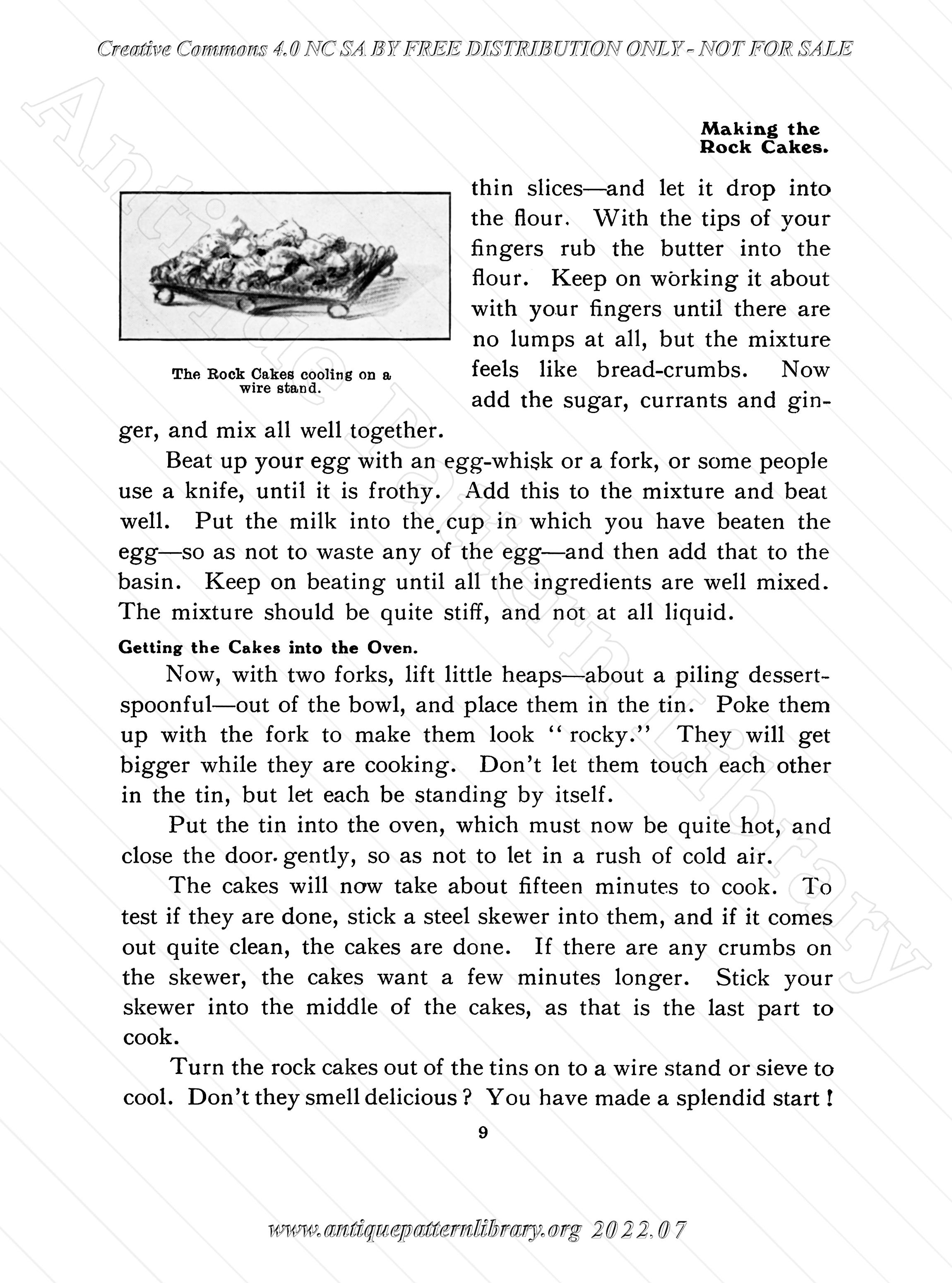 Small hardcover, 68 pages excluding covers, colofon and title pages. Contains receipes and an extensive explanation of the methods of working and the reasoning behind it. The author addresses the reader directly. Apple tarts, cakes, making lemonade, trifle, plum pudding, boiling fish and eggs and potatoes and many similar items, as well as laying and clearing a table, washing up dishes, weighing ingredients.