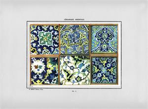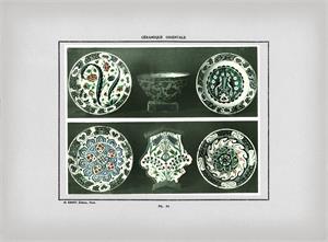 Colored plates of Persian, Anatolian and Syrian ceramics from the 12th through the 18th centuries. Some very beautiful patterns and designs, similar to fabric patterns of the times.