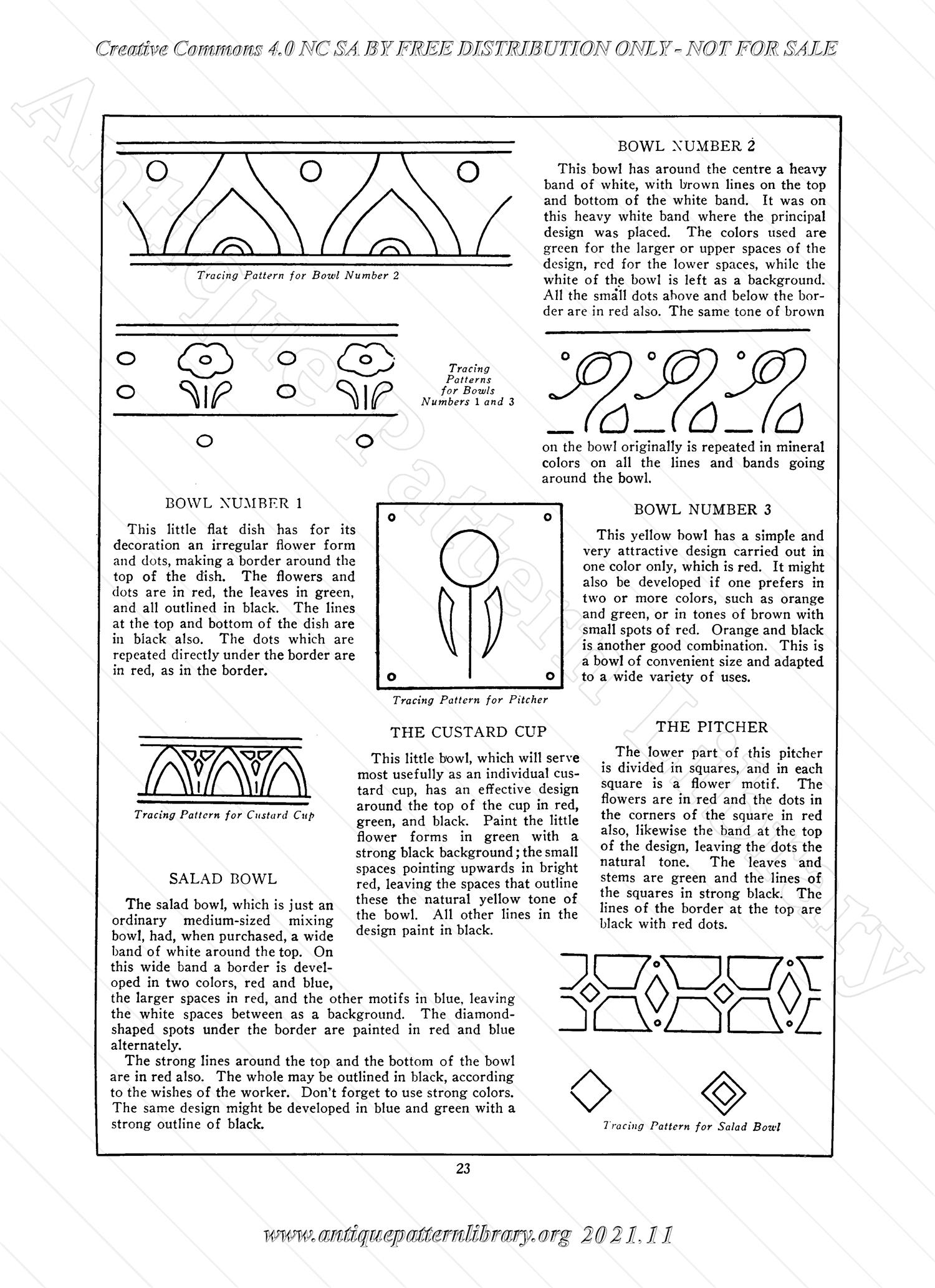 Containing full instructions for decorating in flat color and enamels, lustre and gold. Also, a number of designs shown in actual size for tracing.