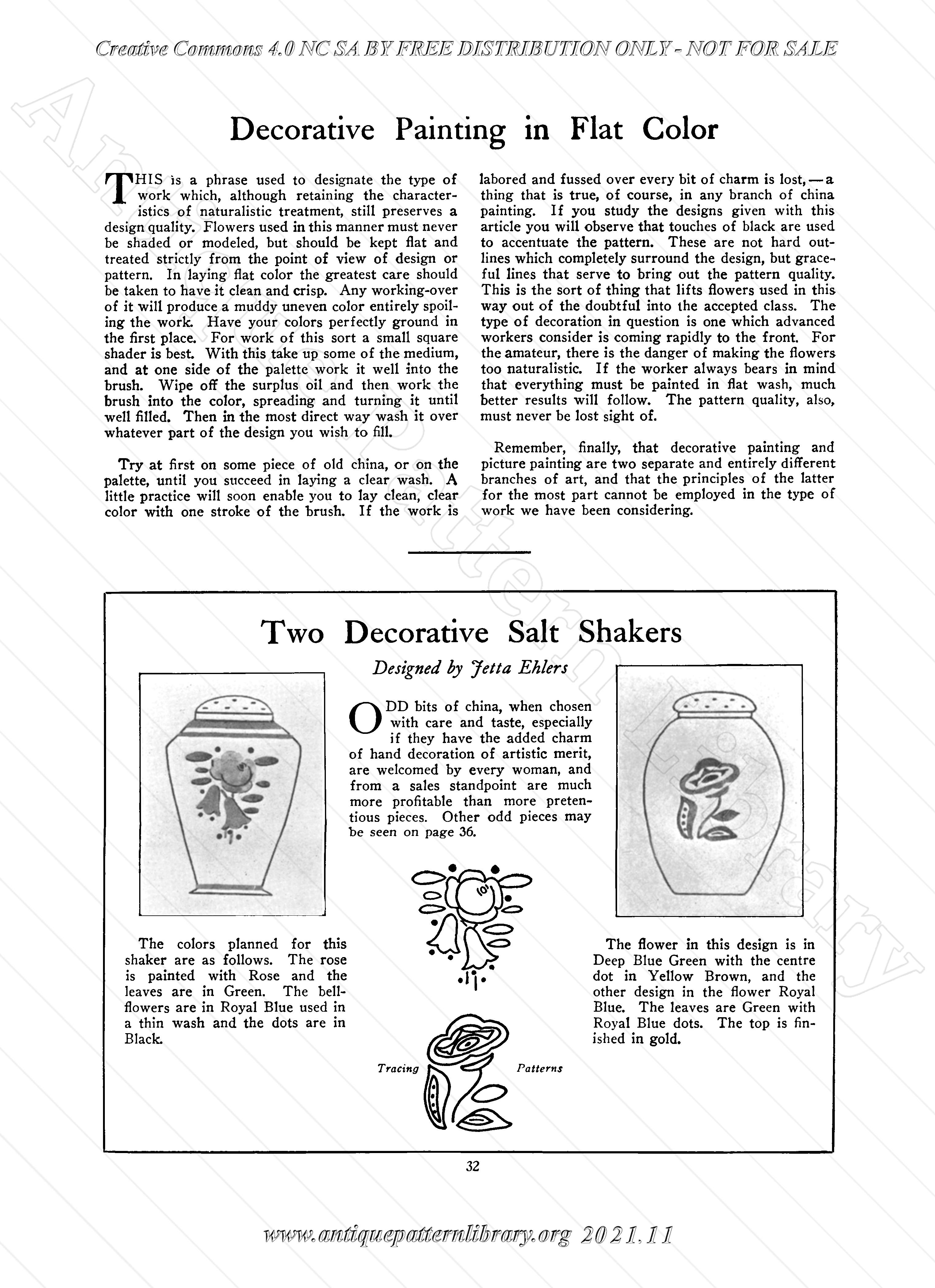 Containing full instructions for decorating in flat color and enamels, lustre and gold. Also, a number of designs shown in actual size for tracing.