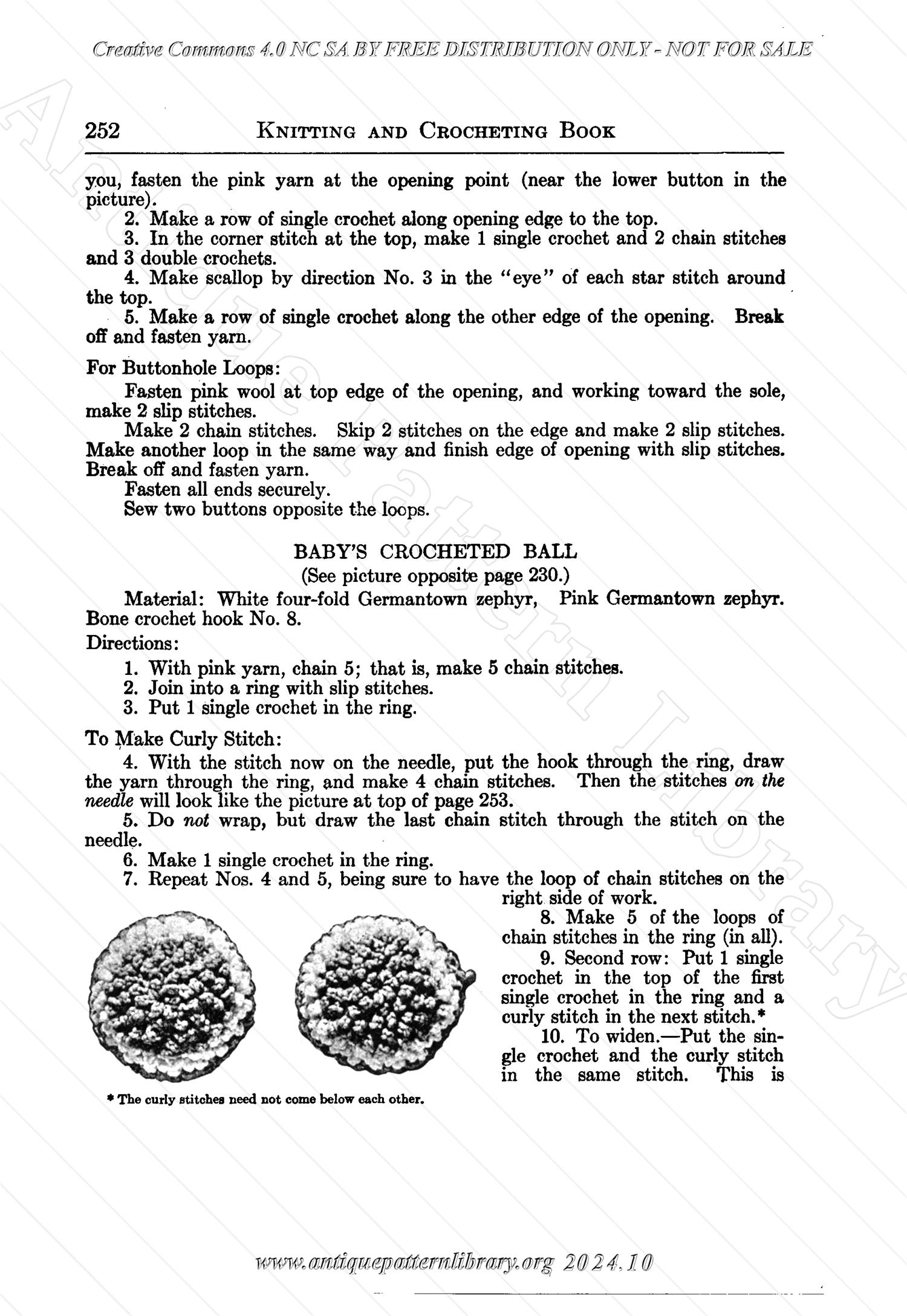 Copyright 1918, illustrated by Jane Allen Boyer. Hardcover book. Lovely story about Mary Frances and her doll Mary Marie, for whom Mary Frances learns to make clothes. Taught by her own knitting needles, ball of wool, crochet hook, yarn doll and a fairy who helps children who really want to learn, Mary Frances makes scarves, sweaters, hats, slippers, mittens and much more. Excellent instruction book for young children. The book ends with a child's and lady's knitted sweater, and a final chapter on knitting Red Cross items.