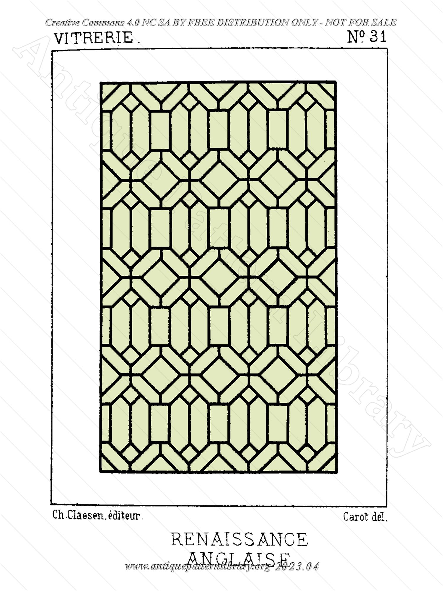 Designs for stained glass, 132 abstract allover patterns for stained glass. Some might be very difficult to execute in glass and are more likely intended as design for grilles. Most can be used as patchwork patterns as well.