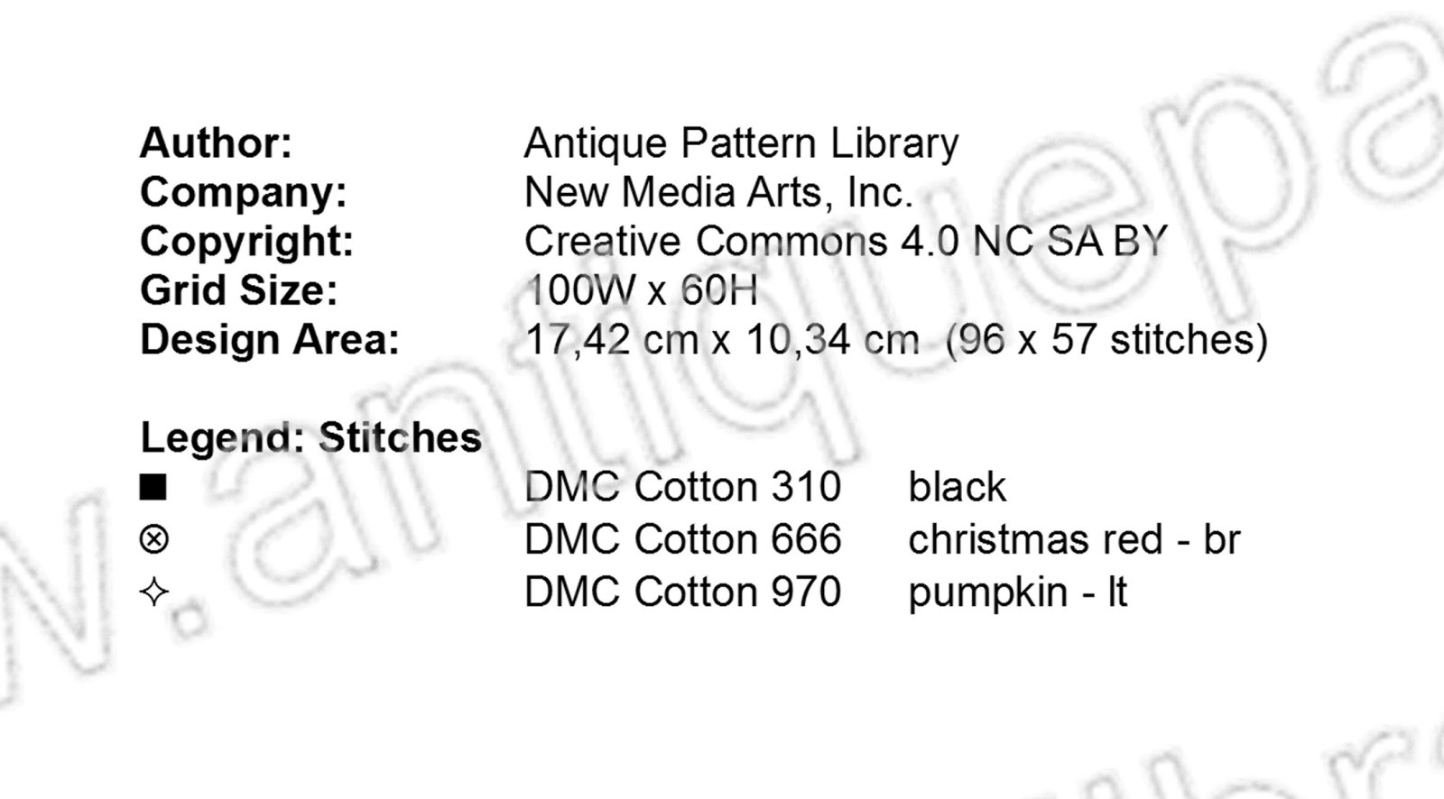 Multicolor charted alphabet. Bold serif uppercase forms, presented in black, red and orange. Handpainted original plus modern recharting and DMC color key.