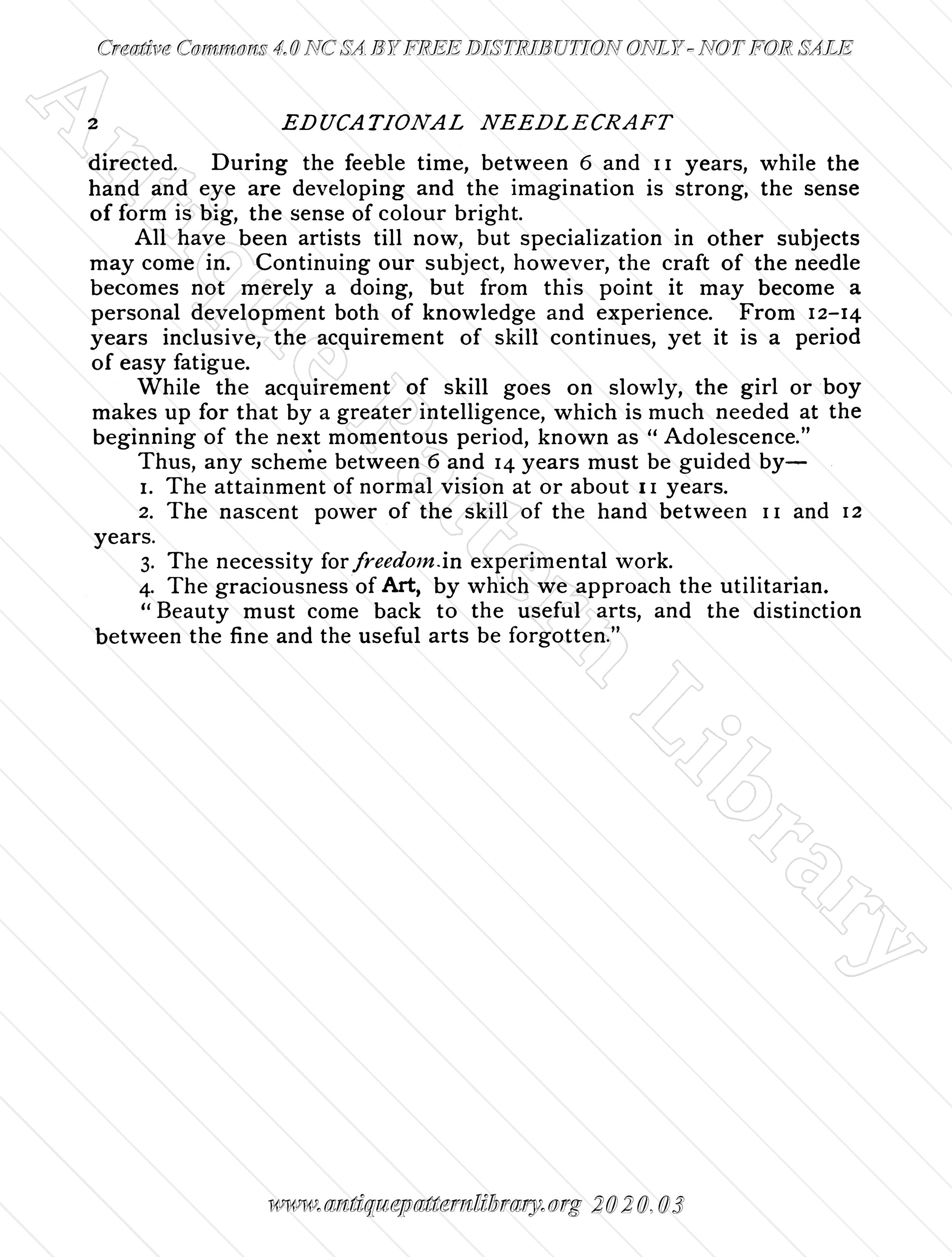 Hardbound book with blue cloth cover. Teachers manual about how to teach needlecraft to girls of various age groups. Complete with estimates of materials needed and costs. Lovely illustrations, very Arts and Crafts style.