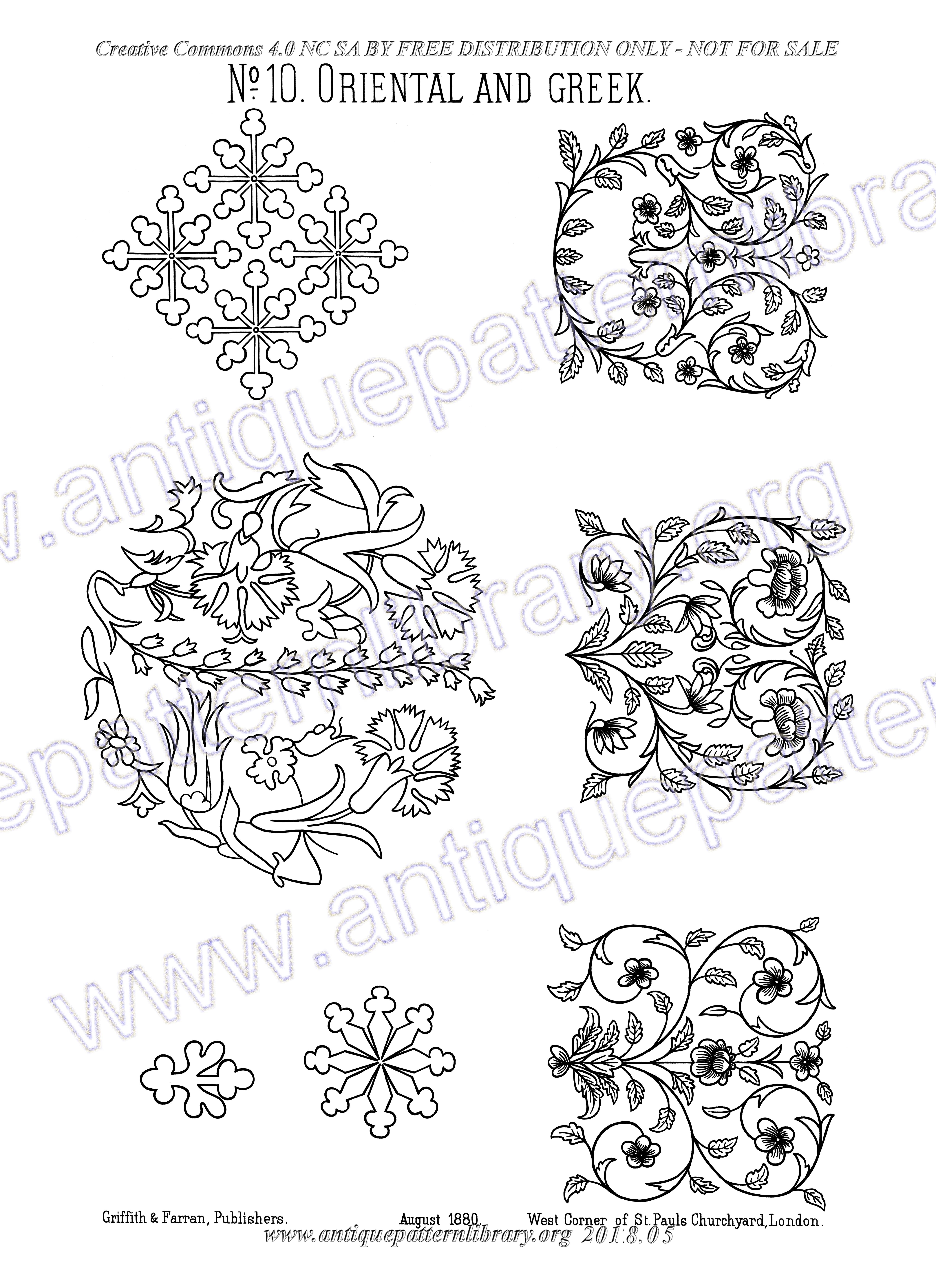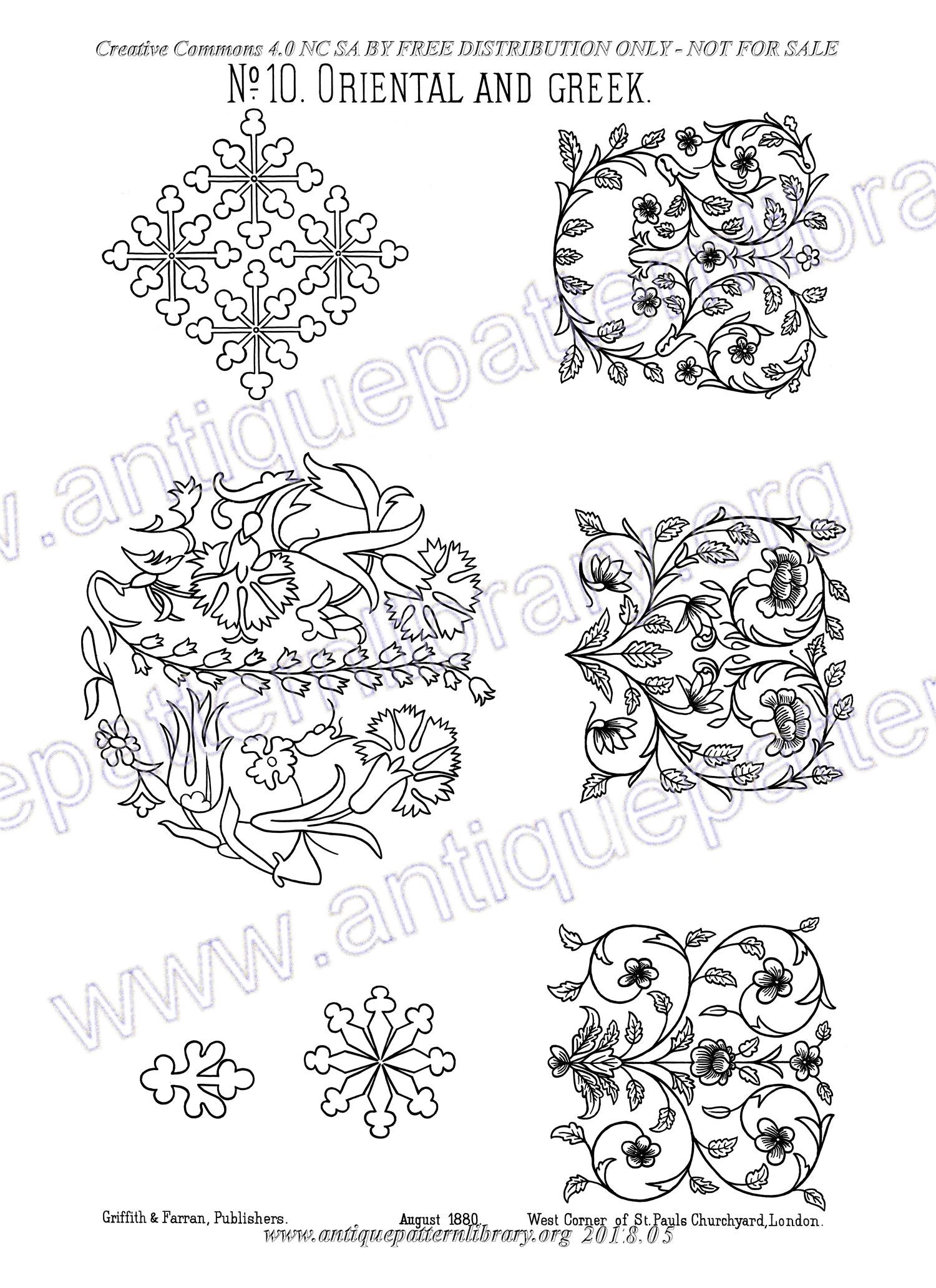 Eighteen A2 plates with outlined embroidery patterns from various backgrounds. Ten plates have been edited, eight will follow later.