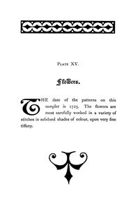 Designs for Church Embroidery and Crewel Work. From Old Examples. Collected and Arranged by Emily Sophia Hartshorne. Eighteen Plates, containing upwards of Sixty Patterns. "In the hands of the skilful shall the work be approved"