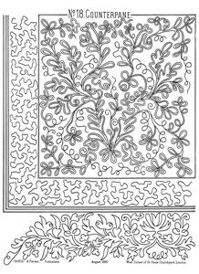 Eighteen A2 plates with outlined embroidery patterns from various backgrounds. Ten plates have been edited, eight will follow later.
