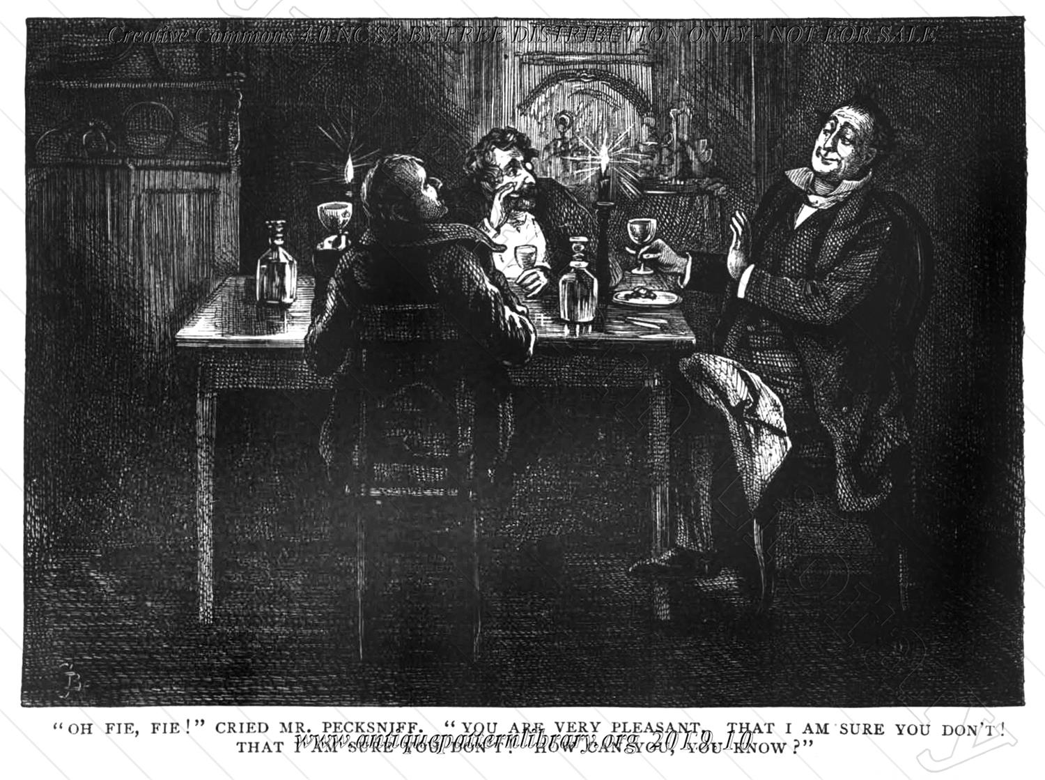 Illustrations from the Household Edition of the Charles Dickens' novel, excellent for theater and costume research. Martin Chuzzlewit is set in the United States, 1840's.