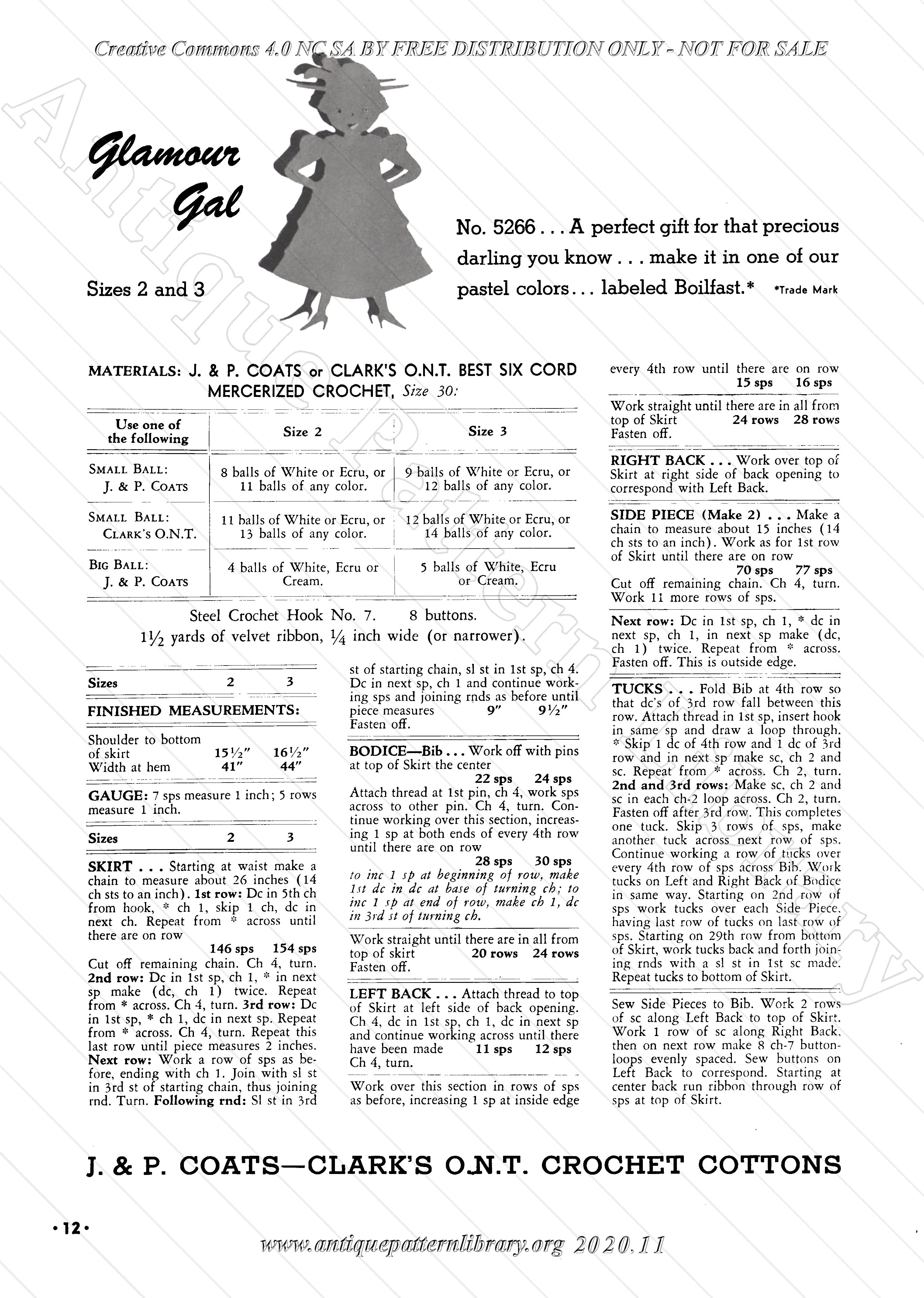 16 pages stapled softcover, damaged by a vertical fold. Seven patterns for toddlers dresses and an occasional cap, all crocheted.