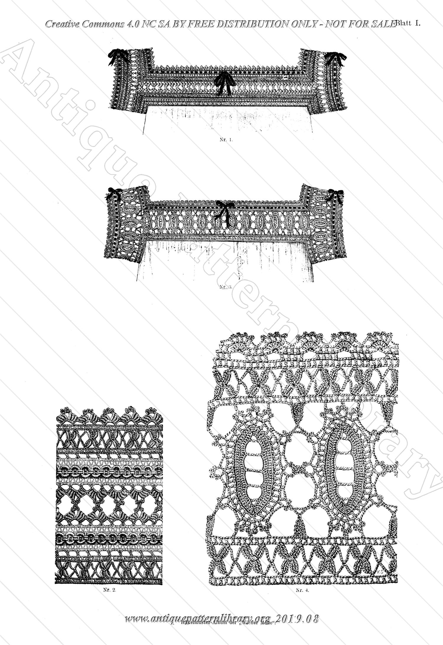 With 168 illustrations and descriptions. Folder with a textbook and 32 plates of crochet items and techniques. Some look like Irish crochet.