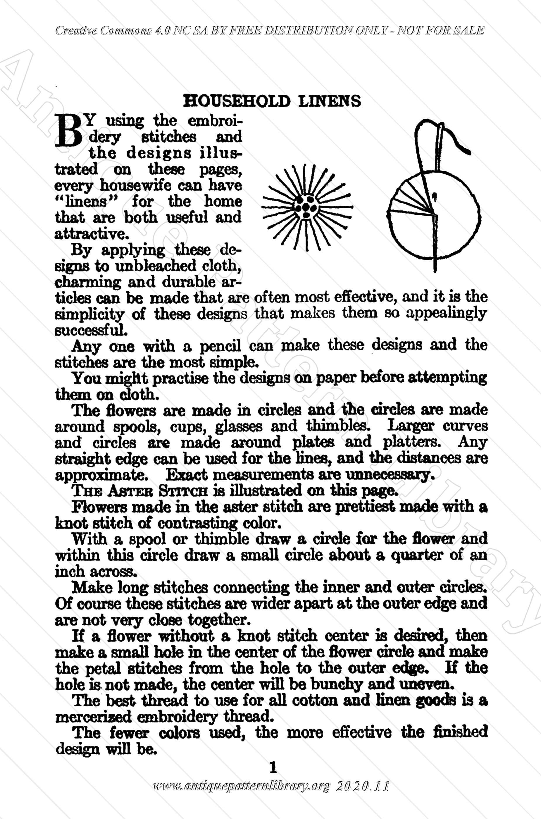 32 pages and 4 for cover. Some ideas for embroidery on household linens, intermixed with glowing reviews of various Lydia E. Pinkham medicines for nearly every physical problem women might have. Approx. two thirds reviews, one third embroidery.