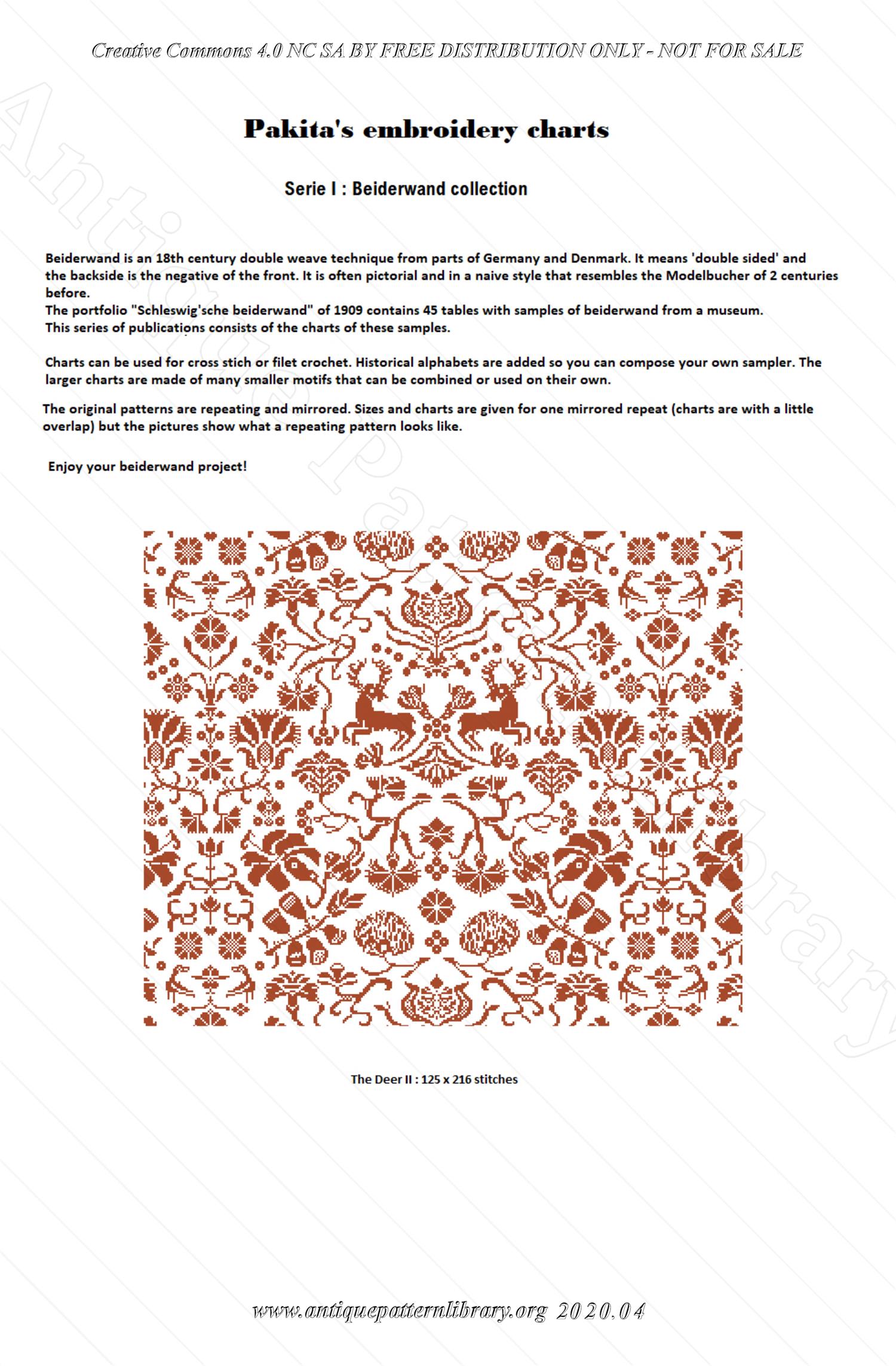 Beiderwand is an 18th century double weave technique from parts of Germany and Denmark. The portfolio "Schleswig'sche Beiderwand" of 1909 contains 45 tables with samples of beiderwand from a museum. This series of publications consist of the charts of these samples.