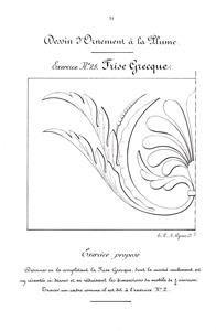 Stapled softcover, 65 numbered pages. A school book for the French national technical and art schools. Contains 70 drawing exercises with examples to copy.