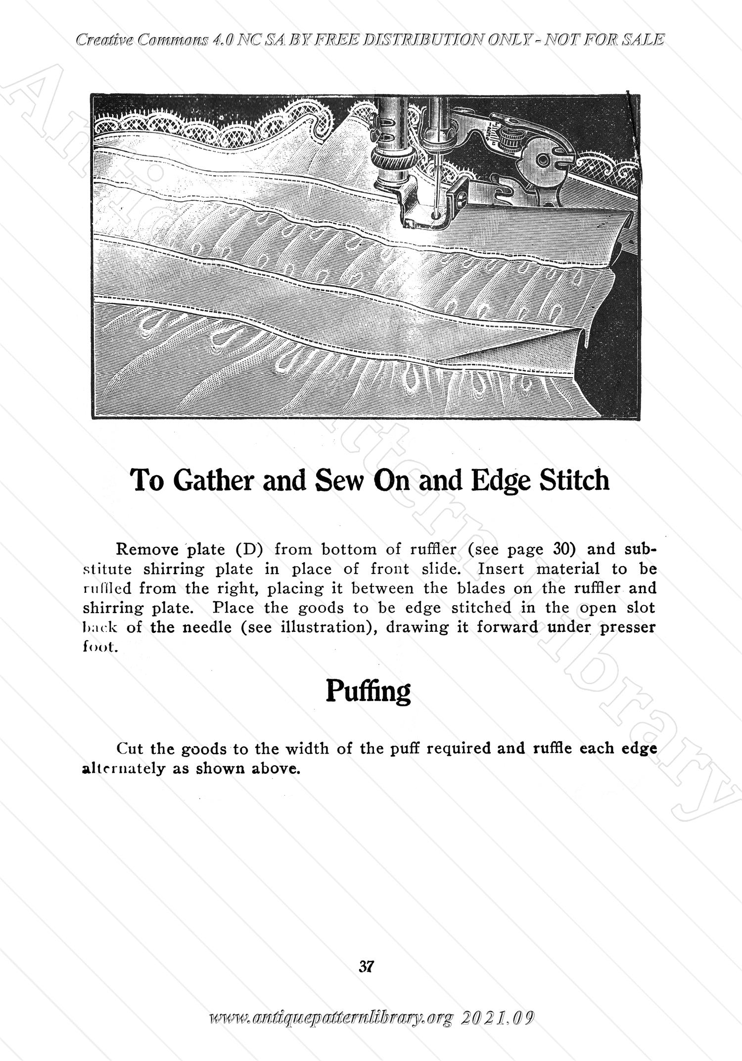 40 page stapled manual, cover missing. Extensive instructions about the use of the Bruce Sewing Machine, a vibrating shuttle machine.