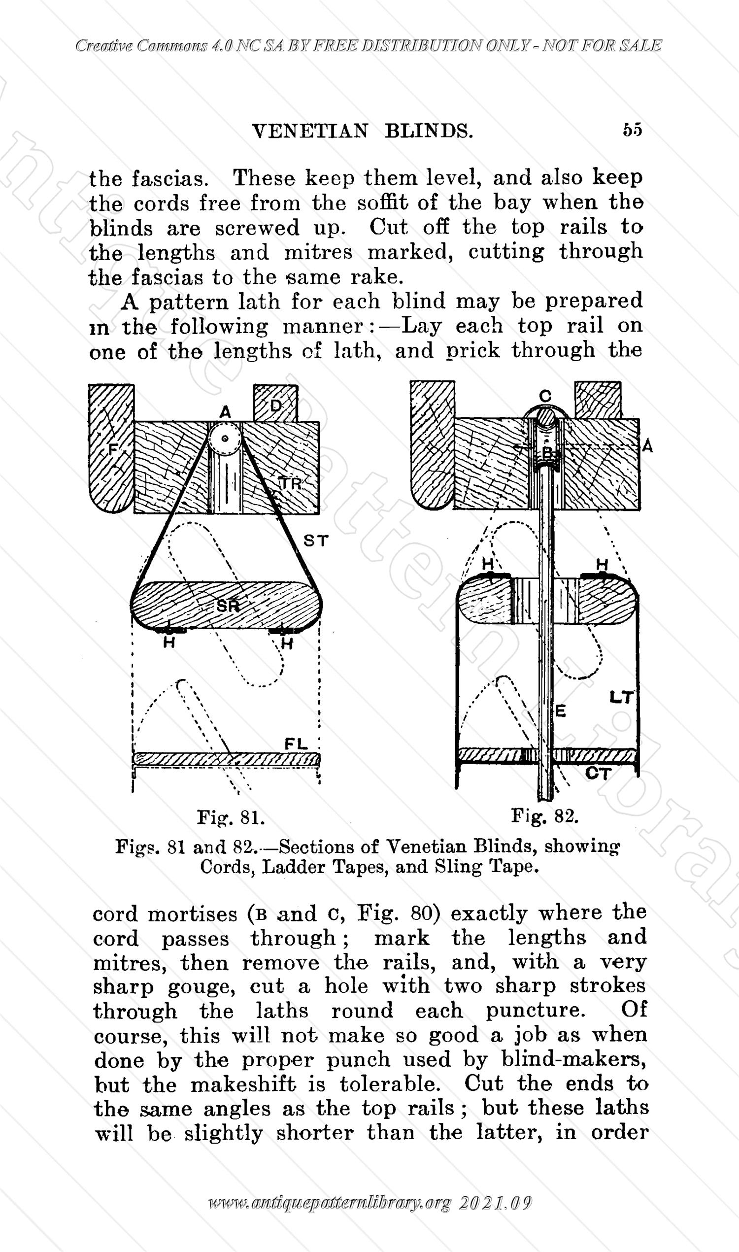 Small hardcover, 160 pages. Instructions on how to make and fix various types of blinds. Focused on hardware and woodwork, no textile patterns given. Contents: Roller Blinds, Spring Blind-rollers, Venetian Blinds, Dwarf Venetian Blinds, Venetian Shutters, Outside Sun-blinds, Spanish Blinds, Florentine Blinds, Oriental Blinds, Helioscene Blinds, Festoon Blinds, Shop Front Blinds, Wire Blinds, Glass Blinds.