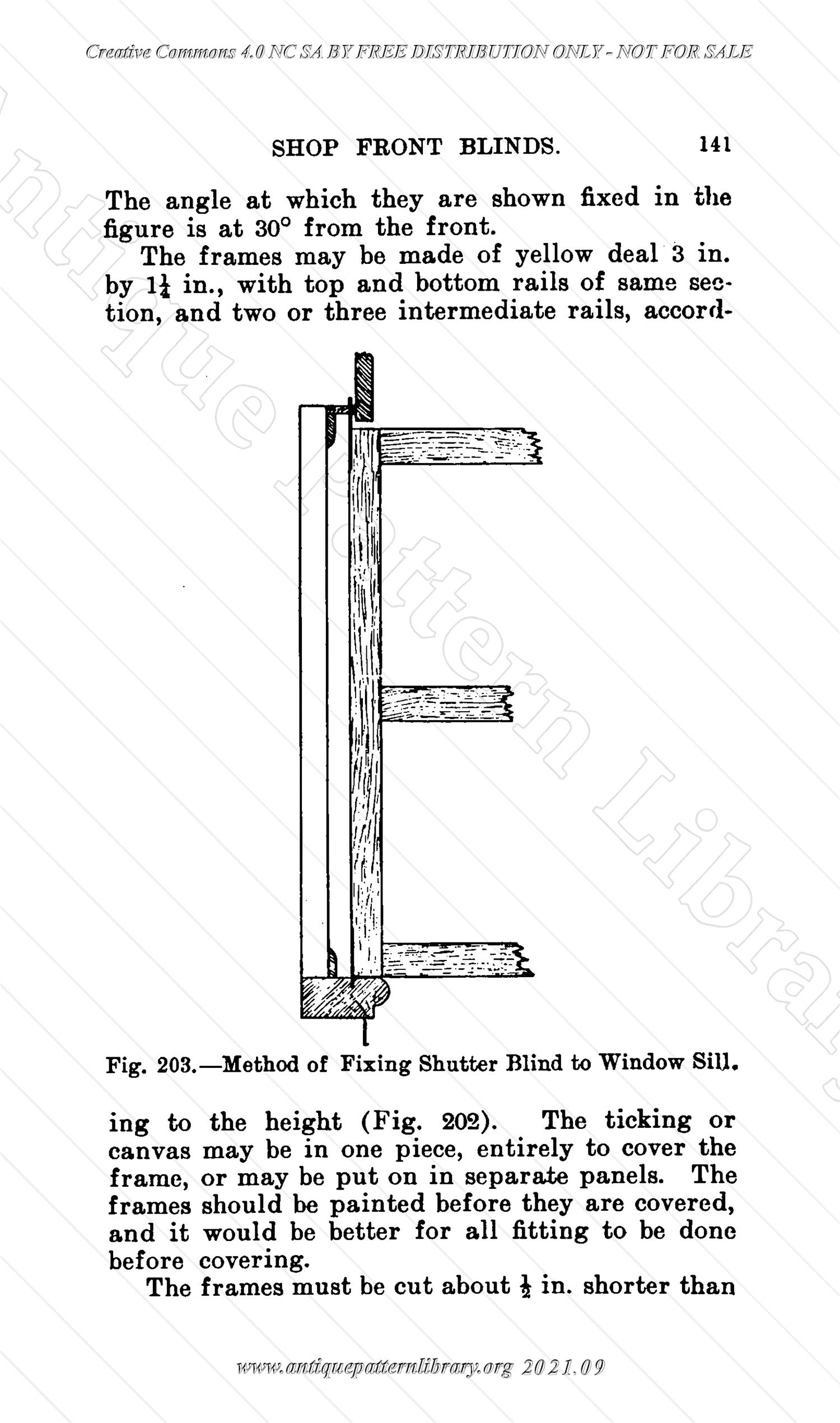 Small hardcover, 160 pages. Instructions on how to make and fix various types of blinds. Focused on hardware and woodwork, no textile patterns given. Contents: Roller Blinds, Spring Blind-rollers, Venetian Blinds, Dwarf Venetian Blinds, Venetian Shutters, Outside Sun-blinds, Spanish Blinds, Florentine Blinds, Oriental Blinds, Helioscene Blinds, Festoon Blinds, Shop Front Blinds, Wire Blinds, Glass Blinds.