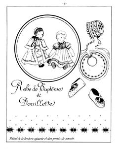 Baby items such as baby bibs, baby shoes, baby cap, baptism robe, cradle cover, cradle sheet, cradle pillow cover, toddler aprons, ladies lingerie, collar, embroidered blouses, tea towels and serviettes, pillow cover and sheet. Circa 1926.