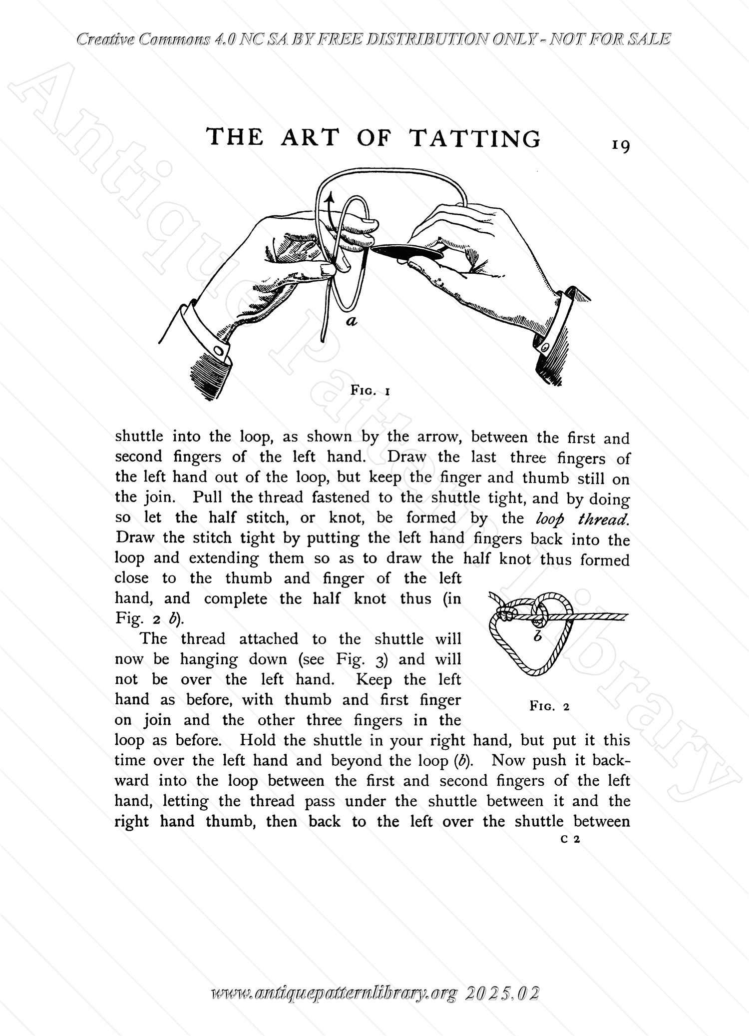 A very well-known work about tatting, with a short introduction about the technique, 6 illustrations of people tatting, and then 49 plates of exquisite tatting work. Some items are beaded as well, and there's also tatted motifs embroidered on textile. Many religious items. The photographs weren't modern-quality sharp, but have been carefully edited and kept at the original scan resolution, in order to allow people to work from them.