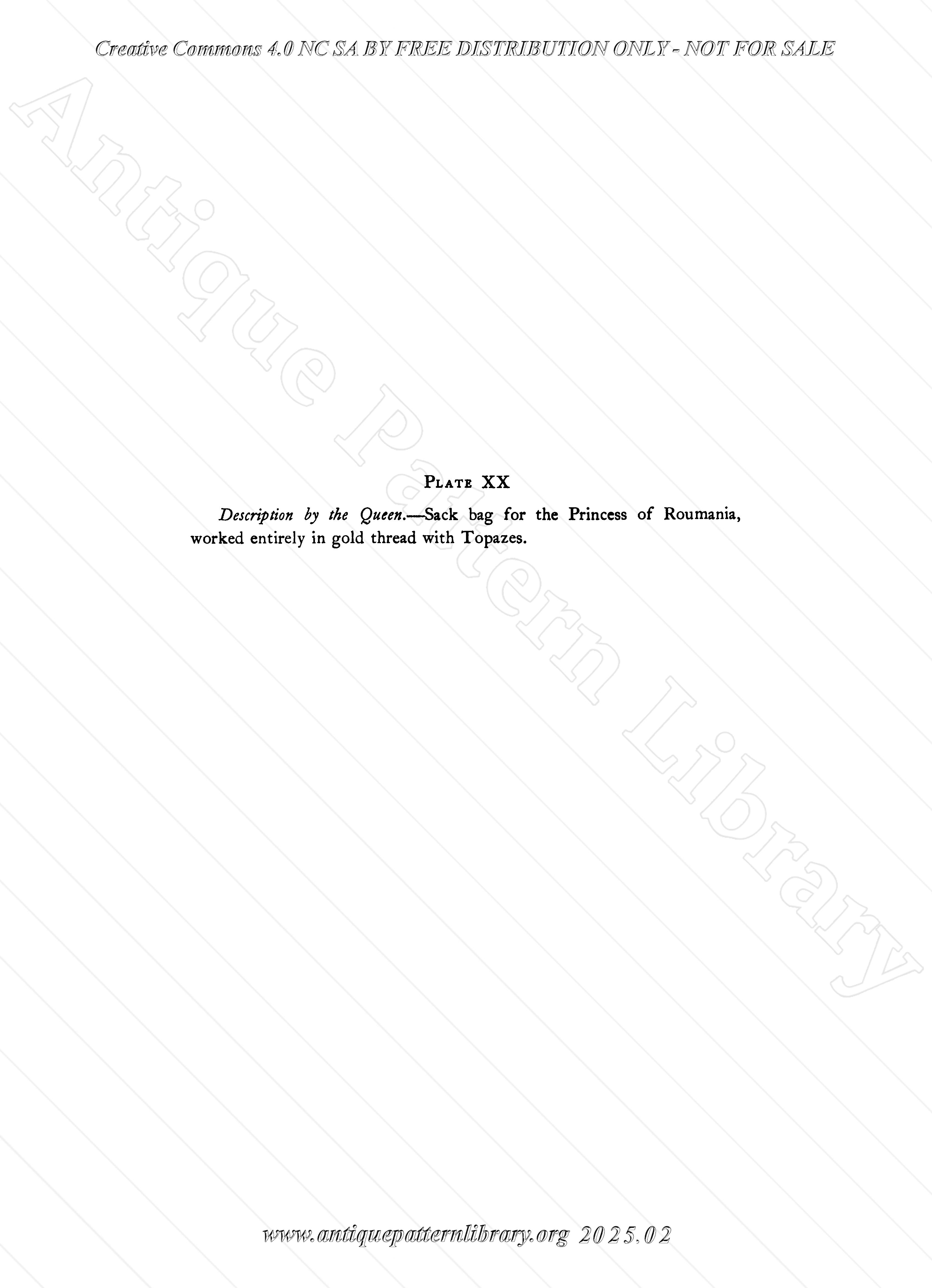 A very well-known work about tatting, with a short introduction about the technique, 6 illustrations of people tatting, and then 49 plates of exquisite tatting work. Some items are beaded as well, and there's also tatted motifs embroidered on textile. Many religious items. The photographs weren't modern-quality sharp, but have been carefully edited and kept at the original scan resolution, in order to allow people to work from them.