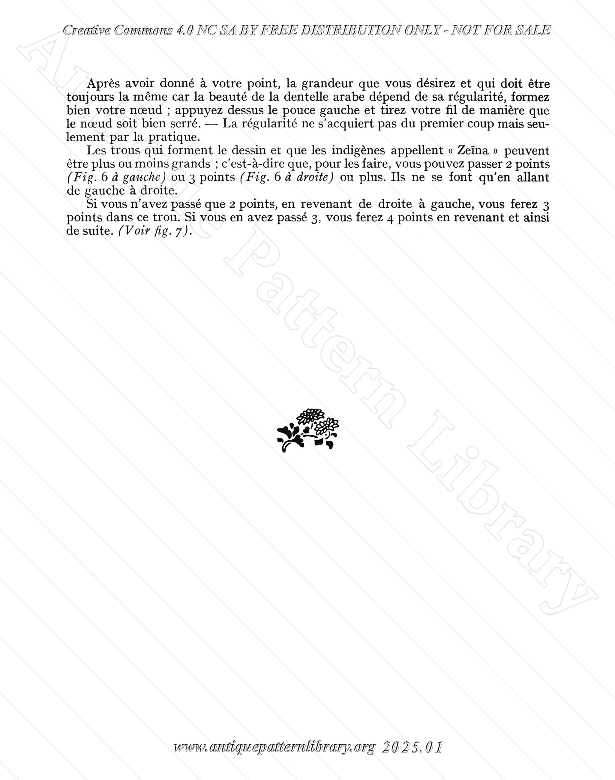 Basic techniques for making Arabian knotted lace. Mediterranian knotted lace exists in many variations, this book focuses on the lace made in Tunisia. The base is two rows of stitches and the lace is knotted between those rows. Originally used to join pieces of fabric when making clothing, then expanding to decorative uses. 30 pages not including covers (uncommon size, page 15/16 was a single sheet).