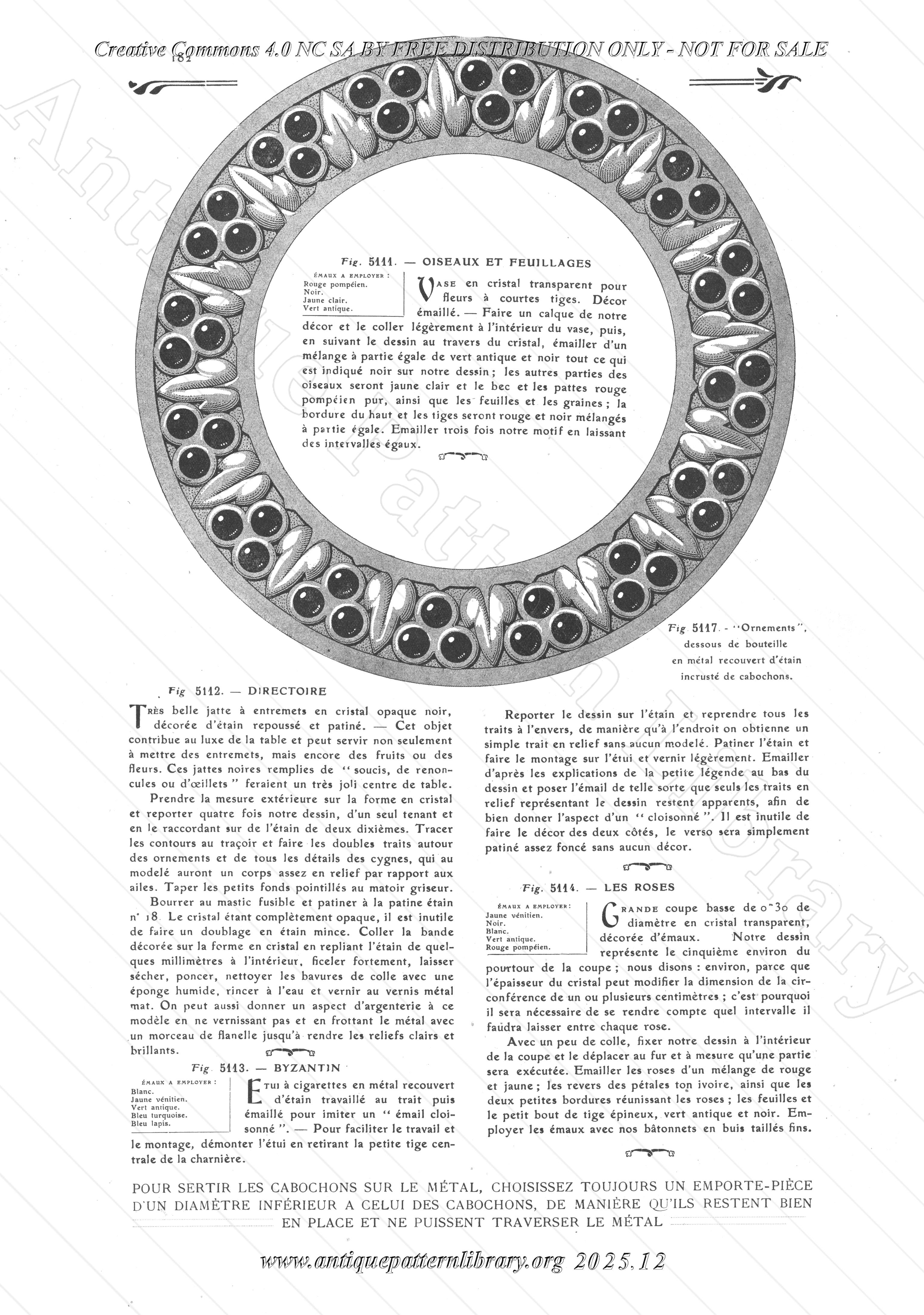 French language magazine of interior design. Includes designs for embroidery, embellishment, repousse on copper (embossing). Style is transitional between Arts & Crafts and Art Deco, and quite dramatic.