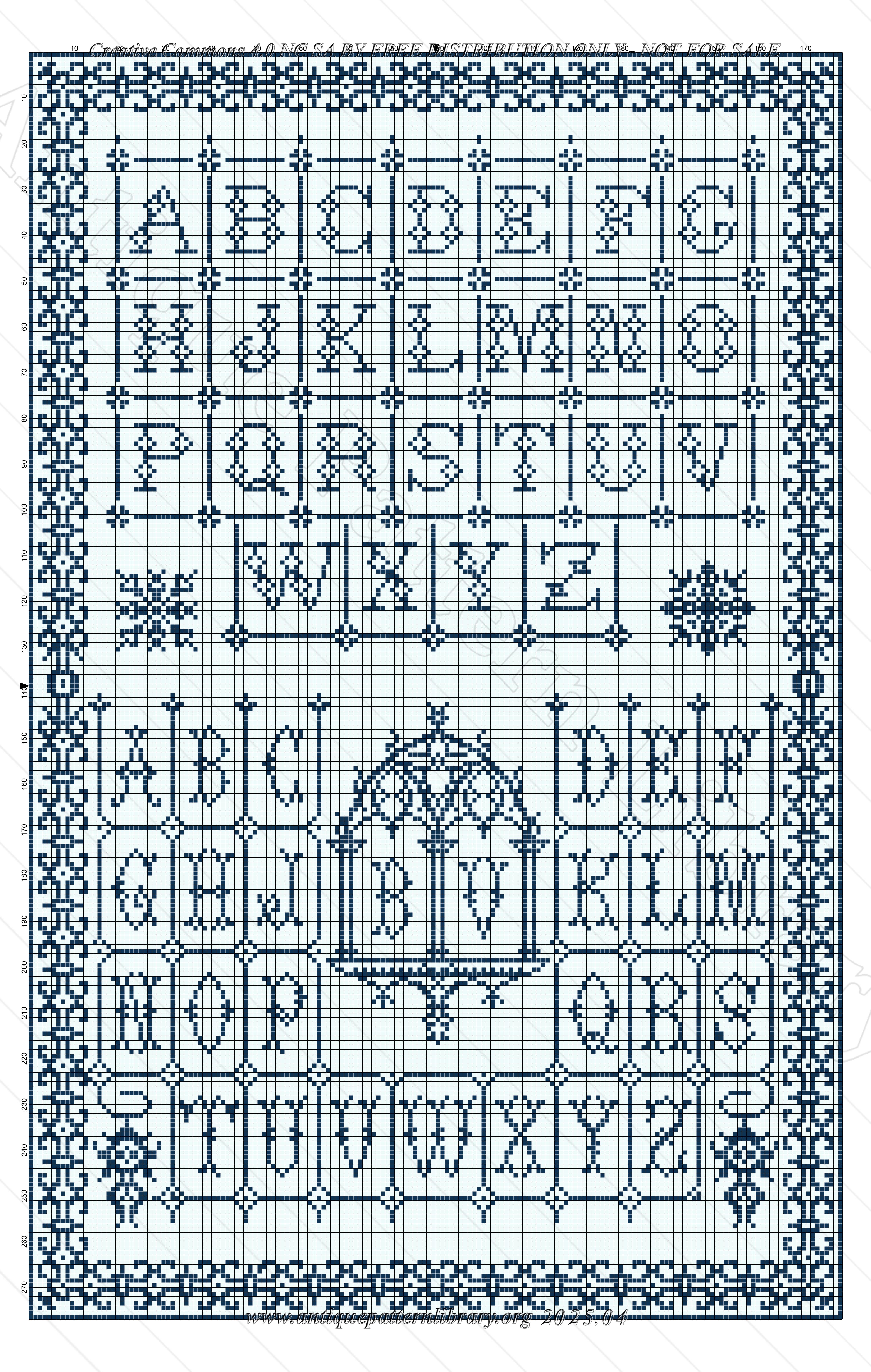 35 alphabets in cross-stitch, from small to quite large, and a medium and large alphabet for whitework or colored embroidery. Also a page with letter combinations and between the alphabets small motifs and mottos.