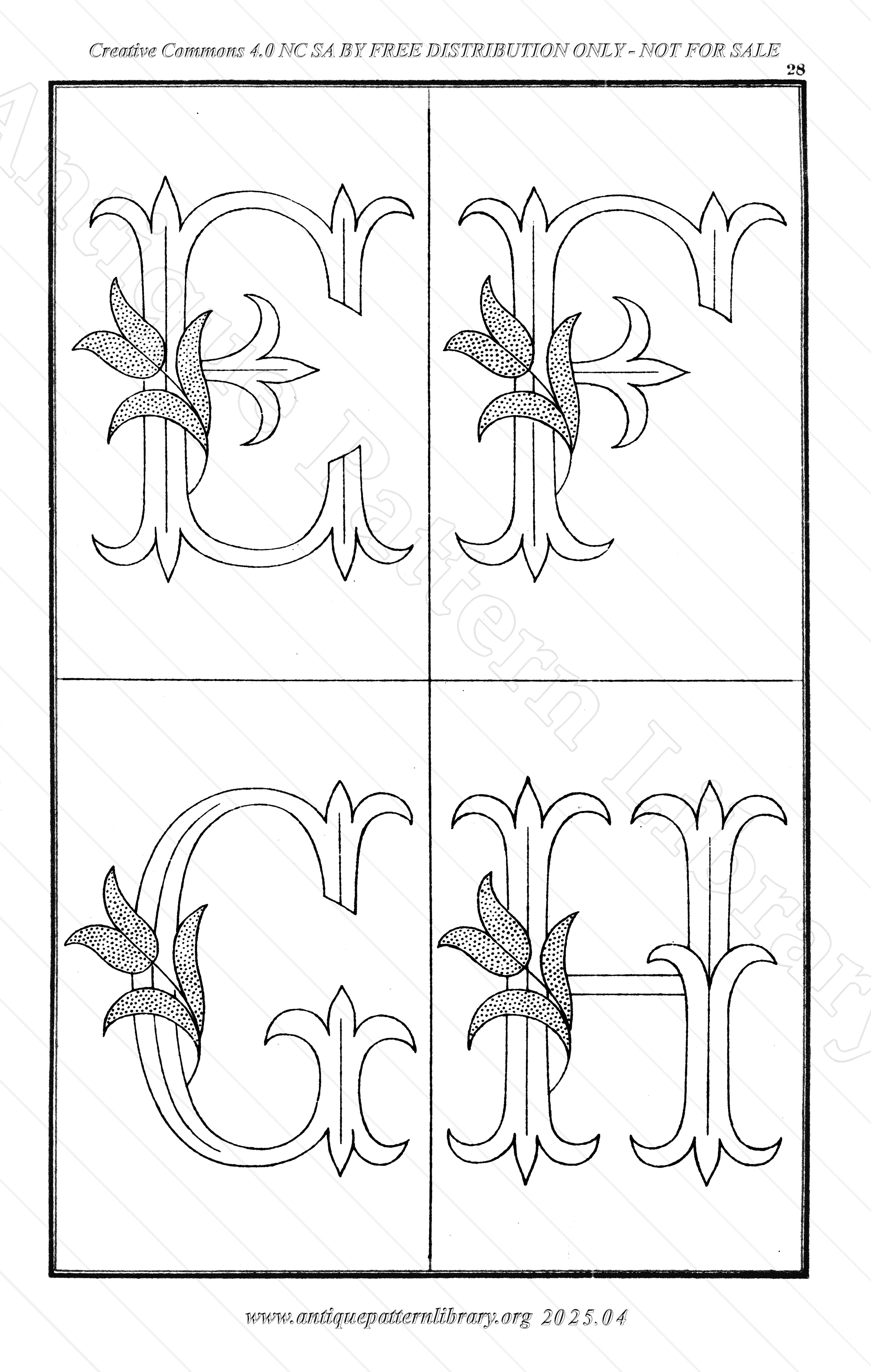 35 alphabets in cross-stitch, from small to quite large, and a medium and large alphabet for whitework or colored embroidery. Also a page with letter combinations and between the alphabets small motifs and mottos.