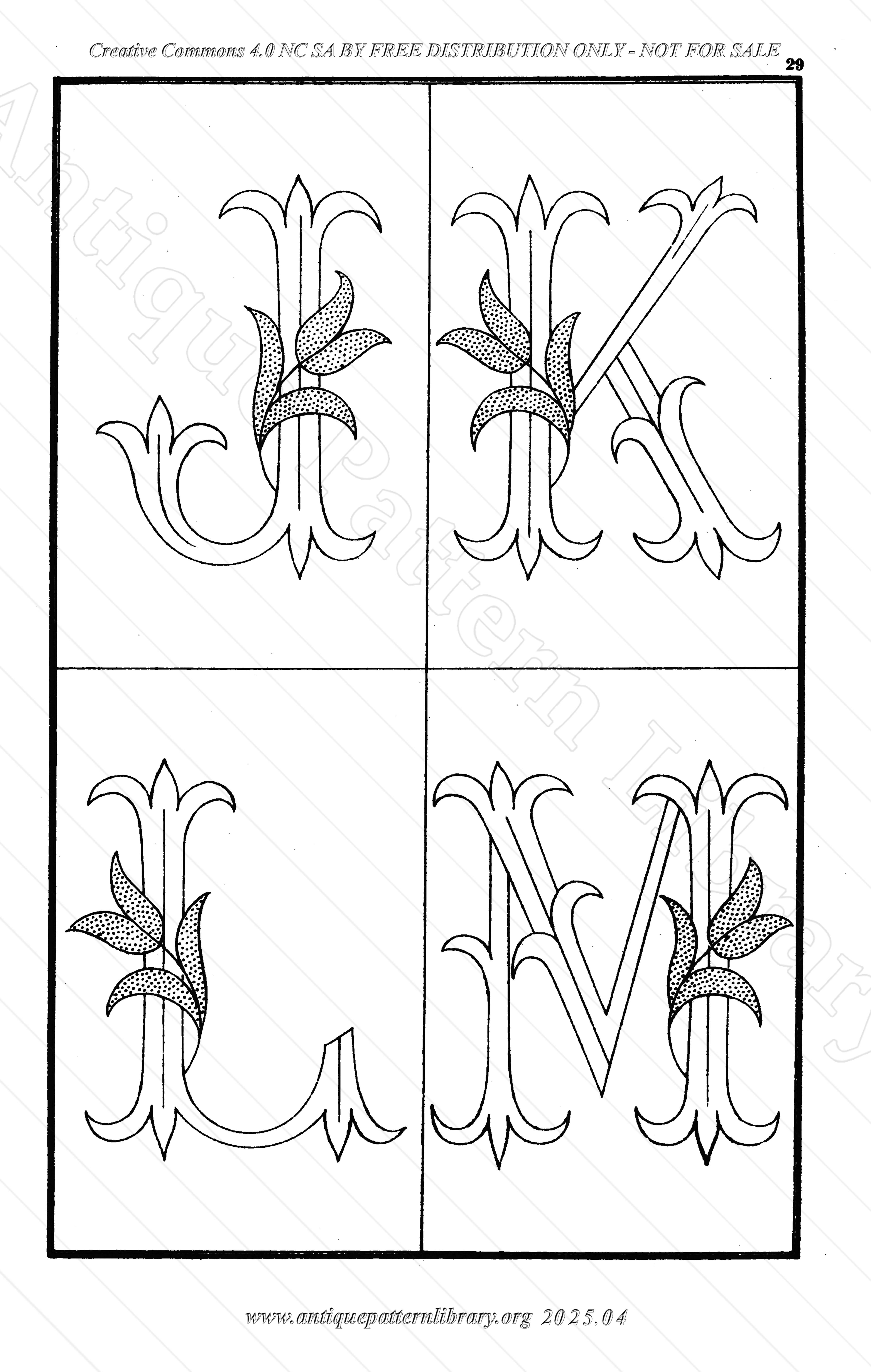 35 alphabets in cross-stitch, from small to quite large, and a medium and large alphabet for whitework or colored embroidery. Also a page with letter combinations and between the alphabets small motifs and mottos.