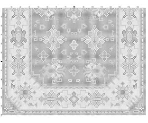 Quarter pattern for a tapestry in seven colors, 160x240 stitches. Handpainted pattern on cream cardboard. German instructions about the thread count to use for kelim and Smyrna work.
