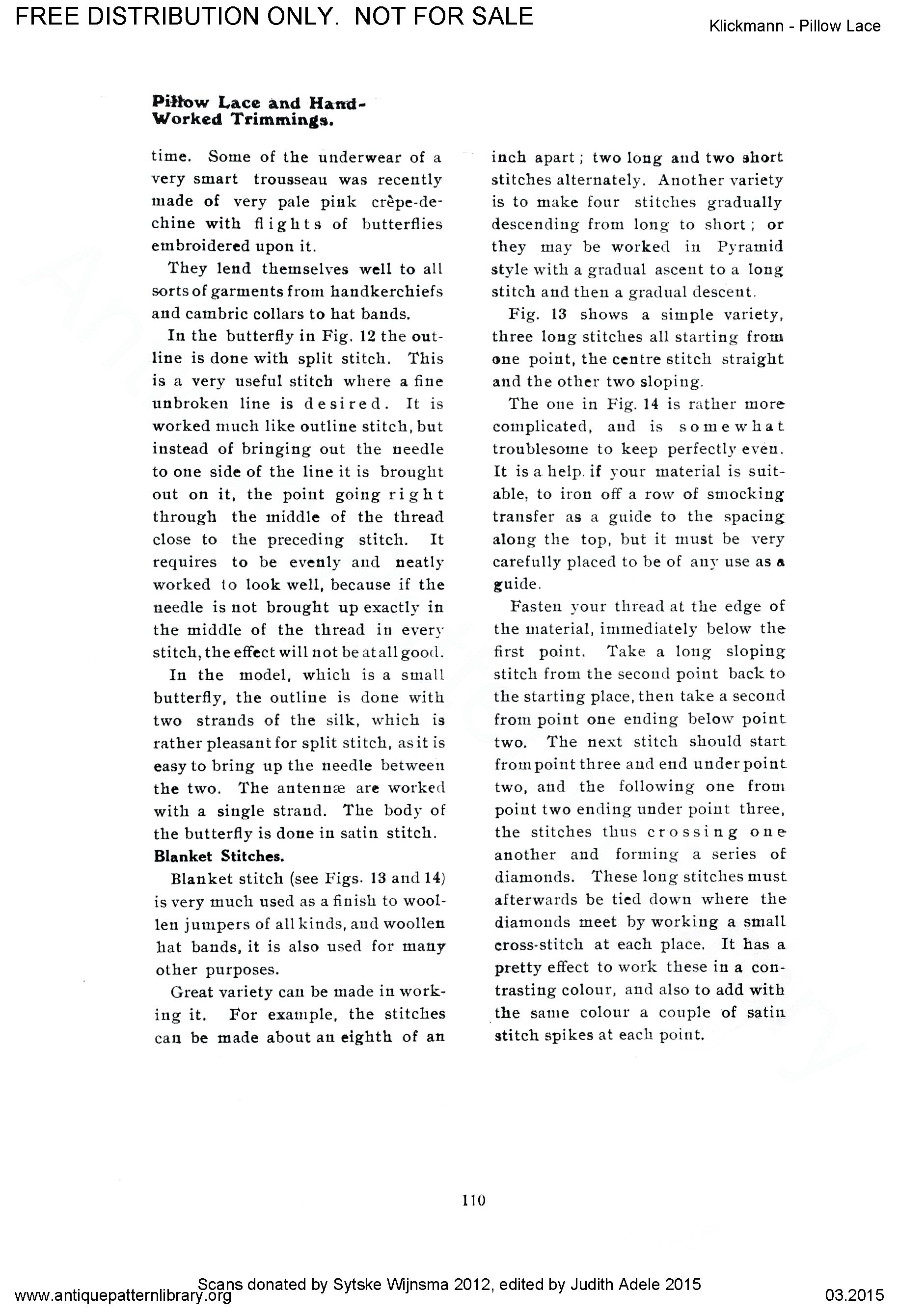 containing directions for making Brussels Duchesse llace, Cluny lace, Torchon lace, Maltese lace, and a variety of designs for decorative embroidery stitches.