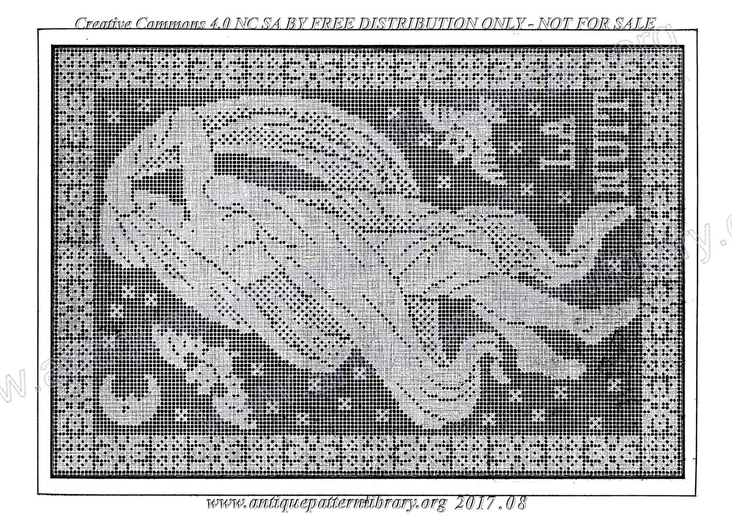 The second Filet Ancient book, printed in 1913. Charted designs for darned net (filet), also useful for filet crochet, cross-stitch, and voided embroidery (Assisi). More strips, insertions, borders, corners, swags, and large motifs. The life of Joan of Arc, heraldic beasts, cherubs; folk tale scenes; cherubs and nymphs; Aesops fables; devotional motifs; Greek and Roman mythic figures; lords and ladies and court life; birds, beasts, flowers, and geometric/scrolling ornament; Night and Day; hunting scenes; procession of the Saints; and more.